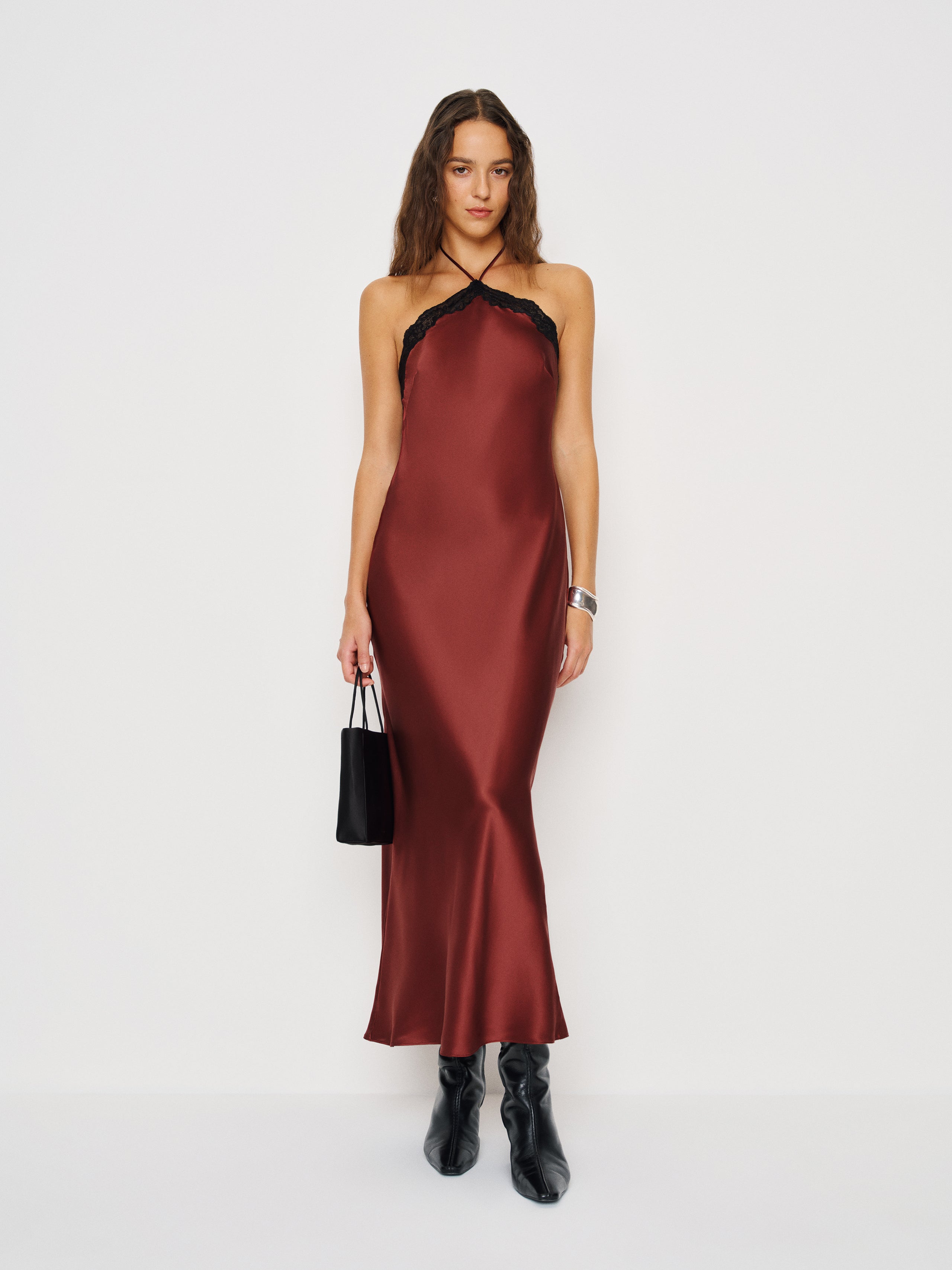 How fancy. Shop the Aara Silk Dress from Reformation, a midi dress with a halter neckline and...