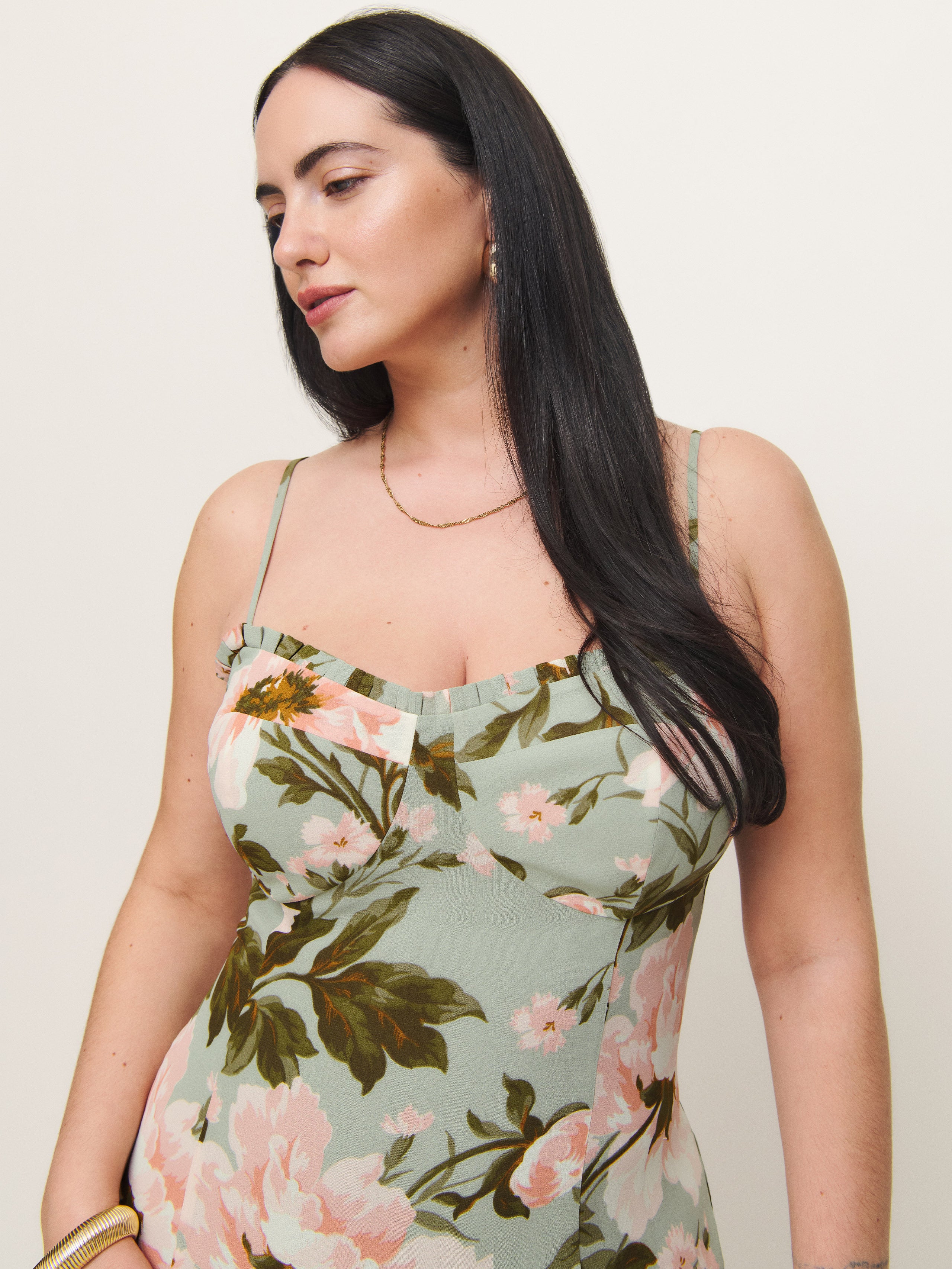 How dreamy. Shop the Aiko Dress ES from Reformation, a midi-length dress with a sweetheart neckline, bust...