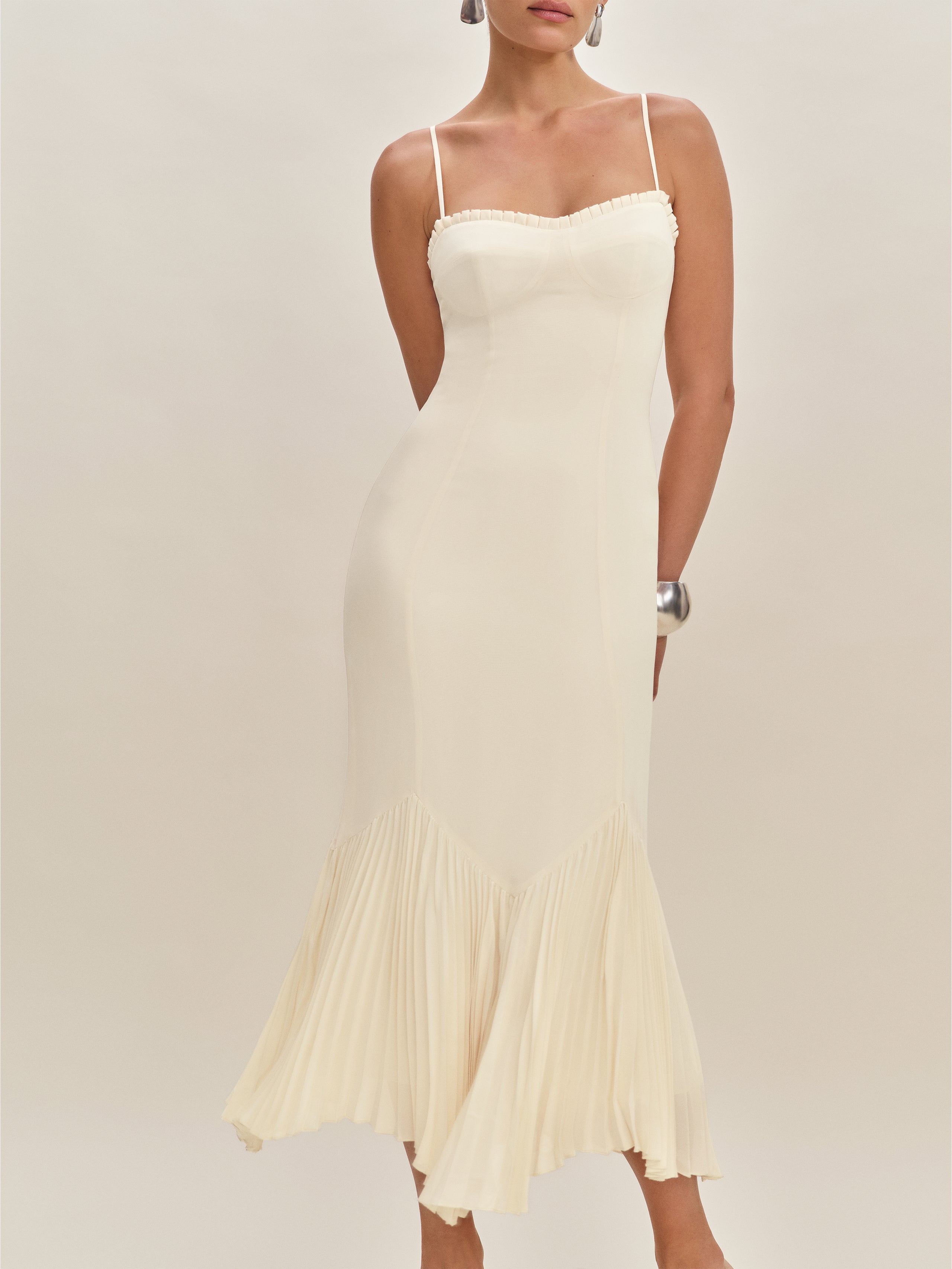 How dreamy. Shop the Aiko Dress from Reformation, a midi length dress with a sweetheart neckline, bust...