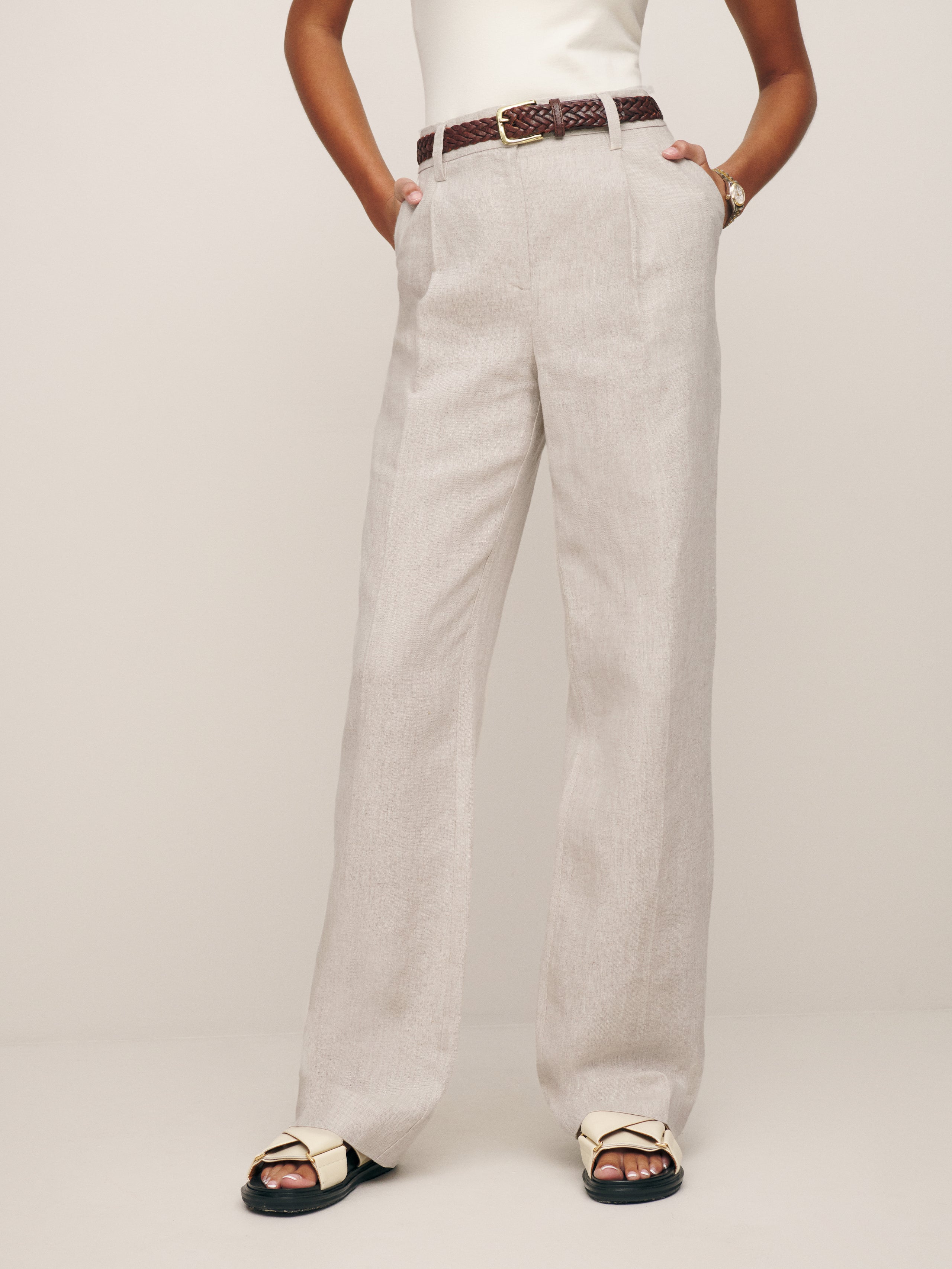 No nonsense. Shop the Alex Linen Mid Rise Pant from Reformation, is a high rise pant with...