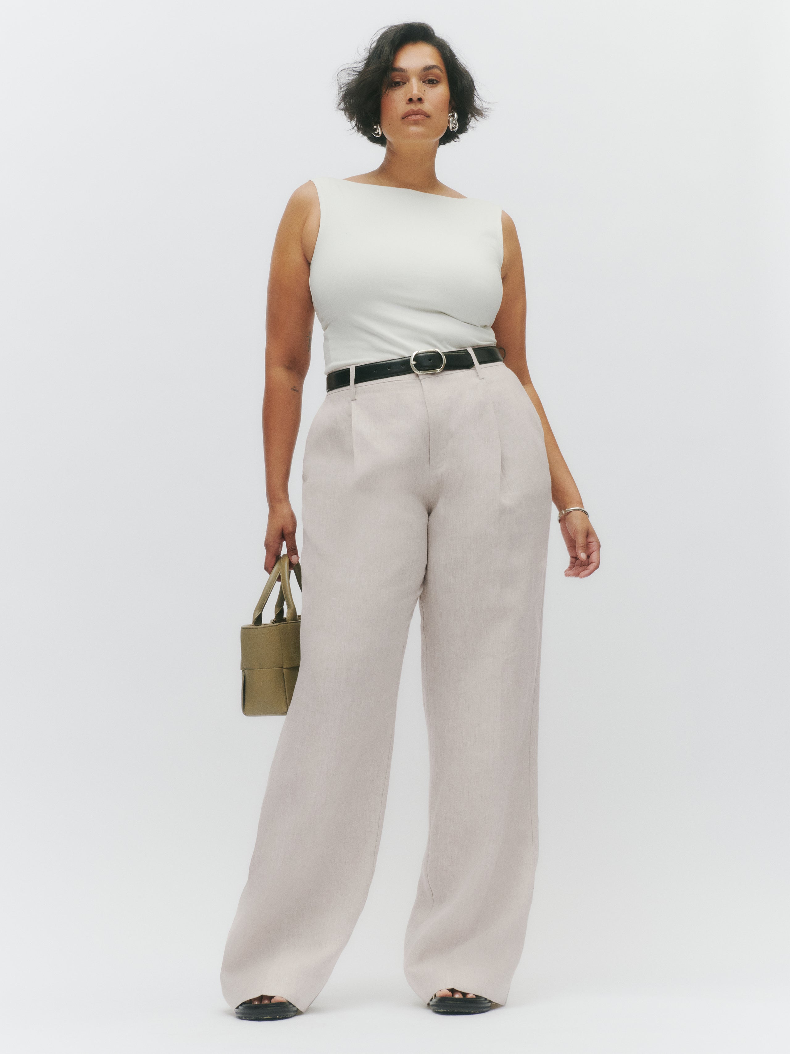 No nonsense. Shop the Alex Linen Pant ES from Reformation, is a high rise pant with pleating...