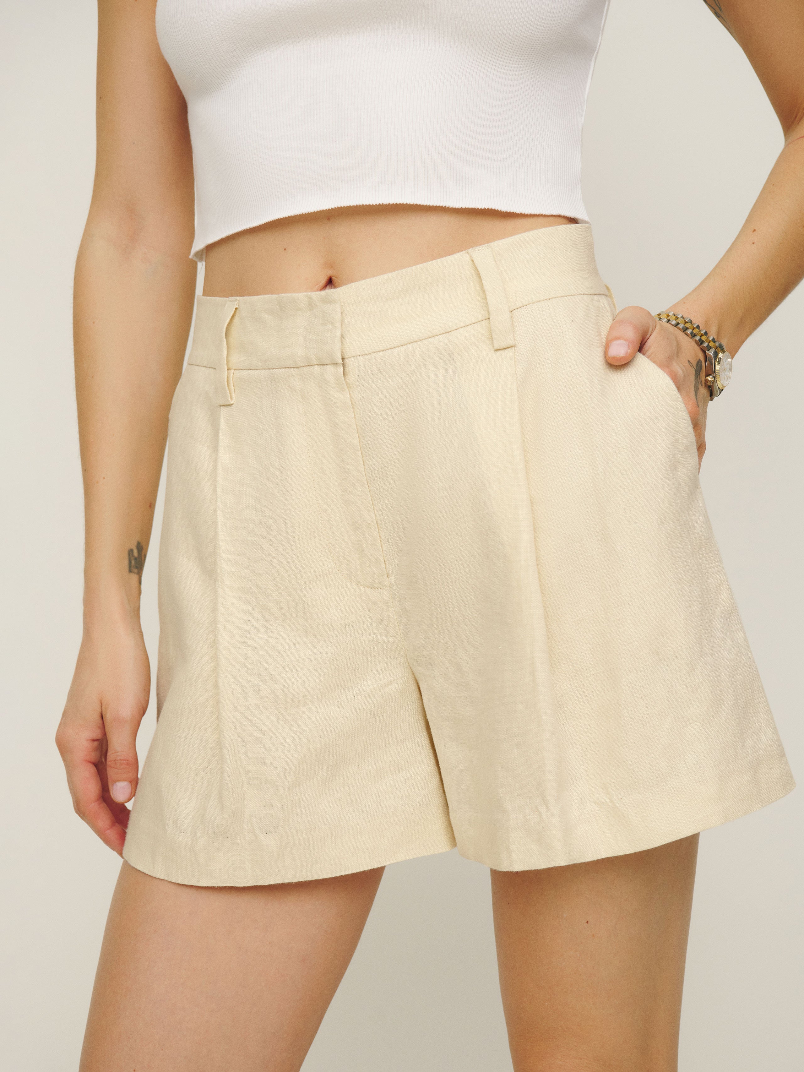 Be a little flexible. Shop the Alex Linen Short from Reformation, a pleated short with belt loops and side pockets.