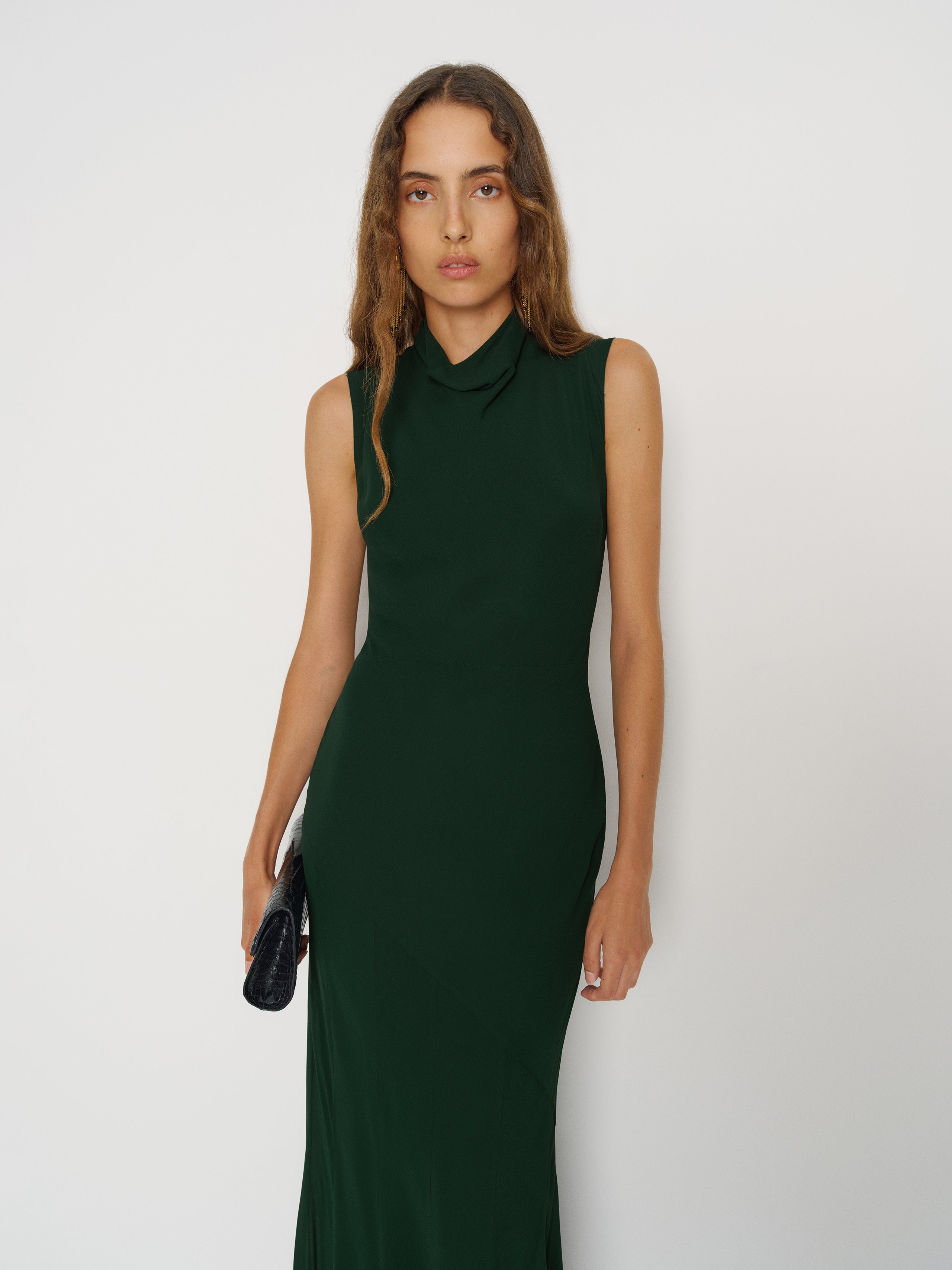 Have we met. Shop the Alizee Dress from Reformation, a sleeveless maxi dress with a high cowl neckline.
