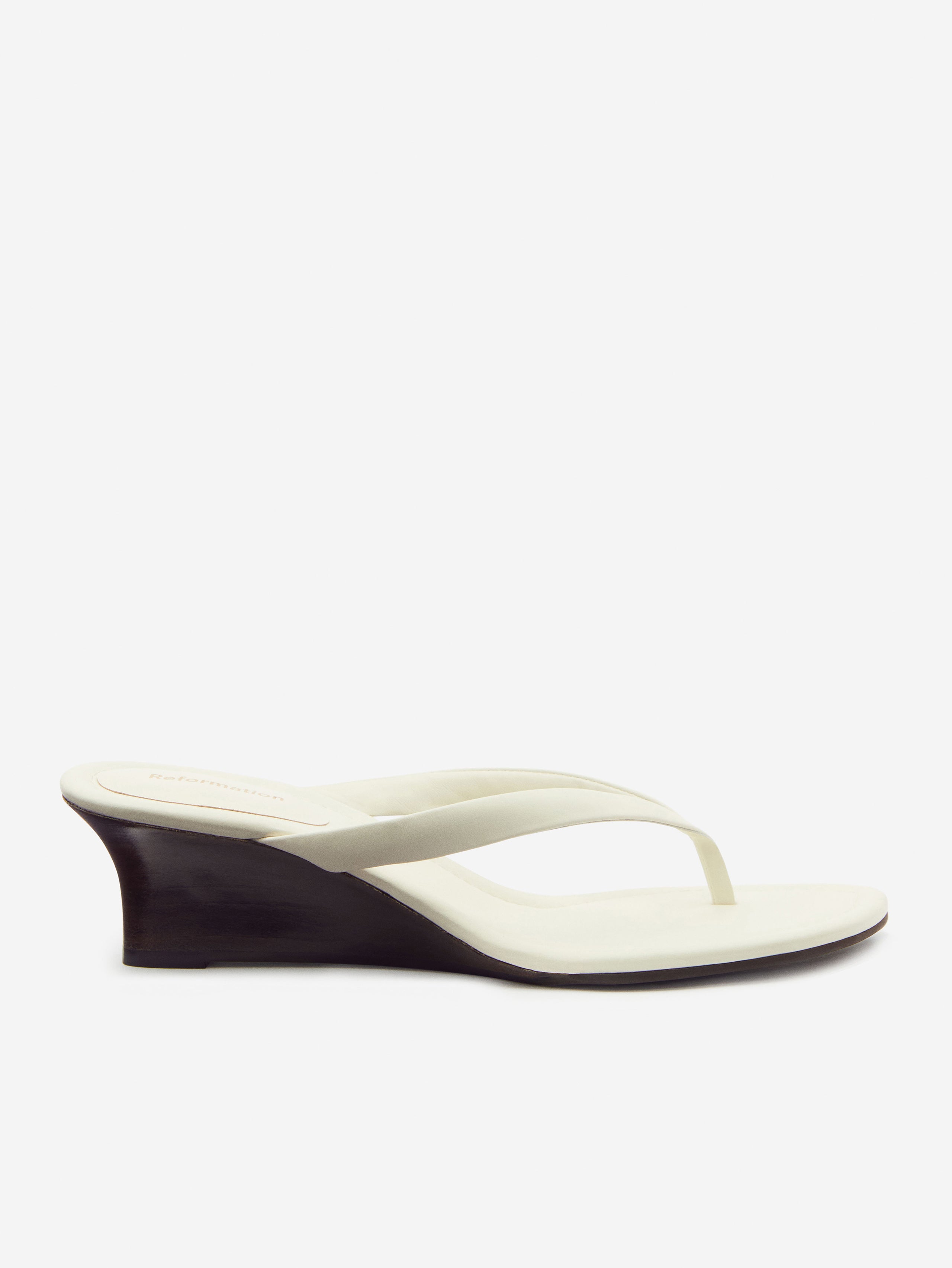 Wear me. Shop the Amelia Thong Wedge from Reformation, a slip on thong sandal with a wedge heel.