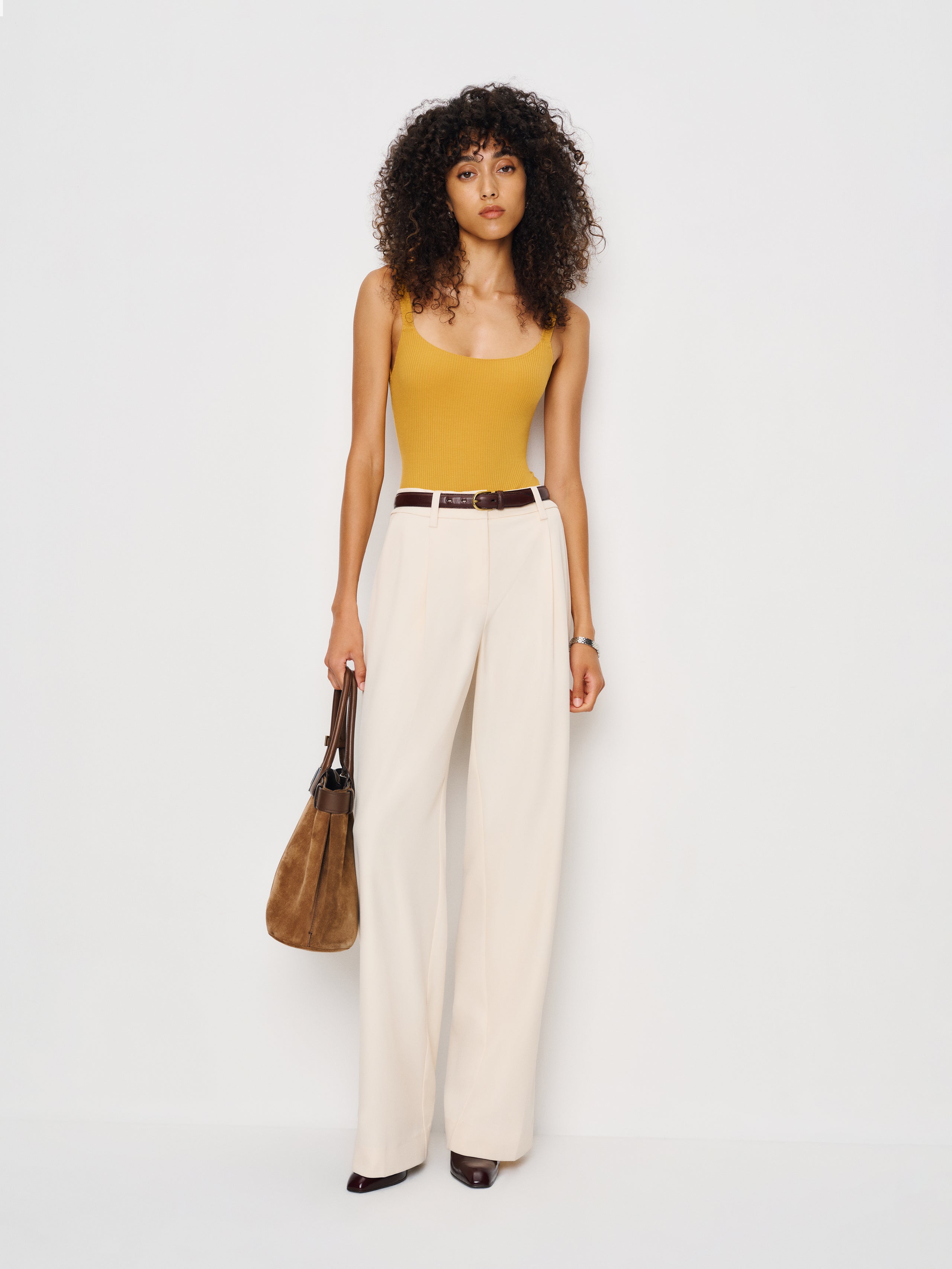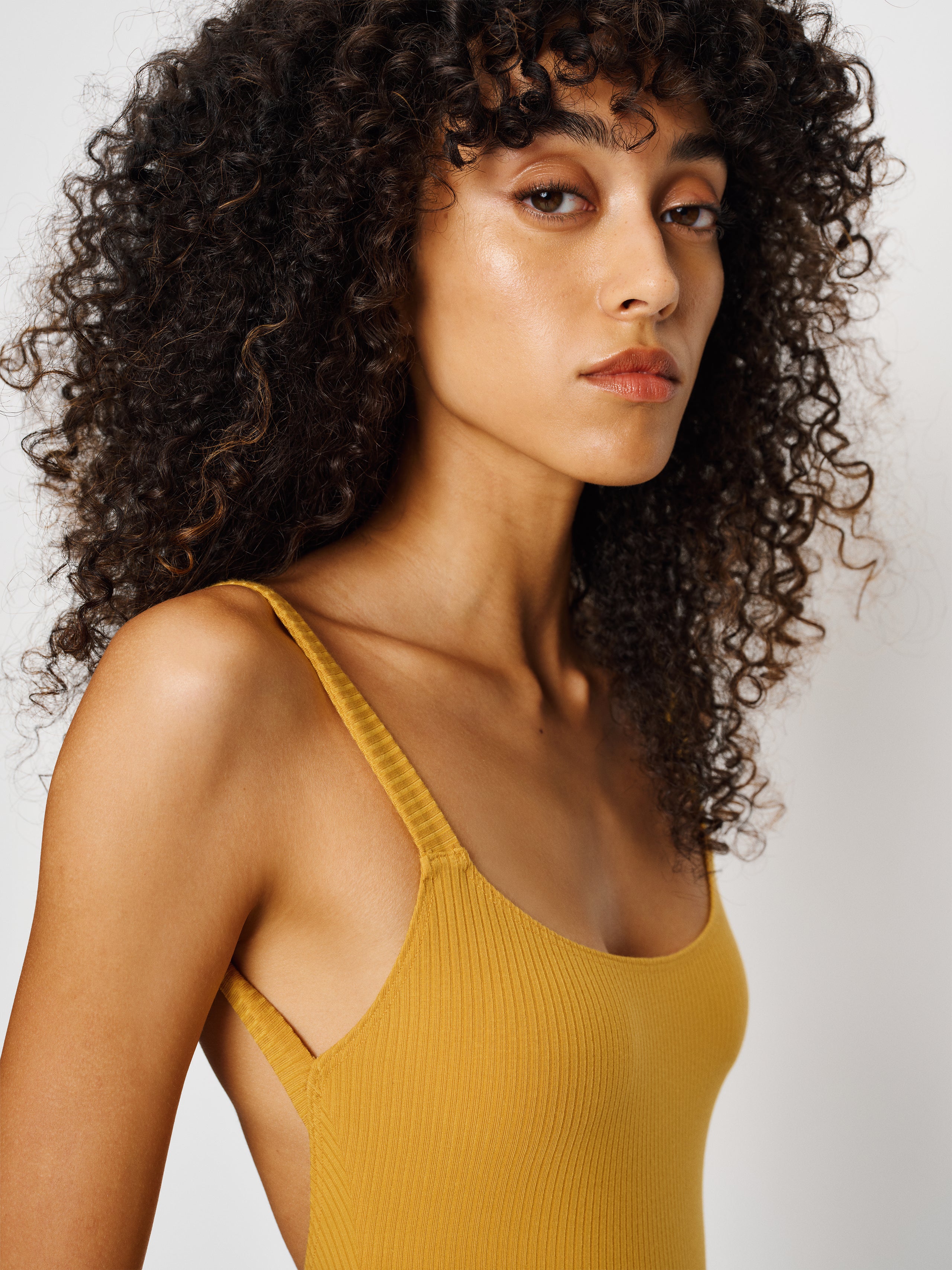 What do we have here? Shop the Amy Bodysuit from Reformation, a tight-fitting open back bodysuit with a scoop neckline.