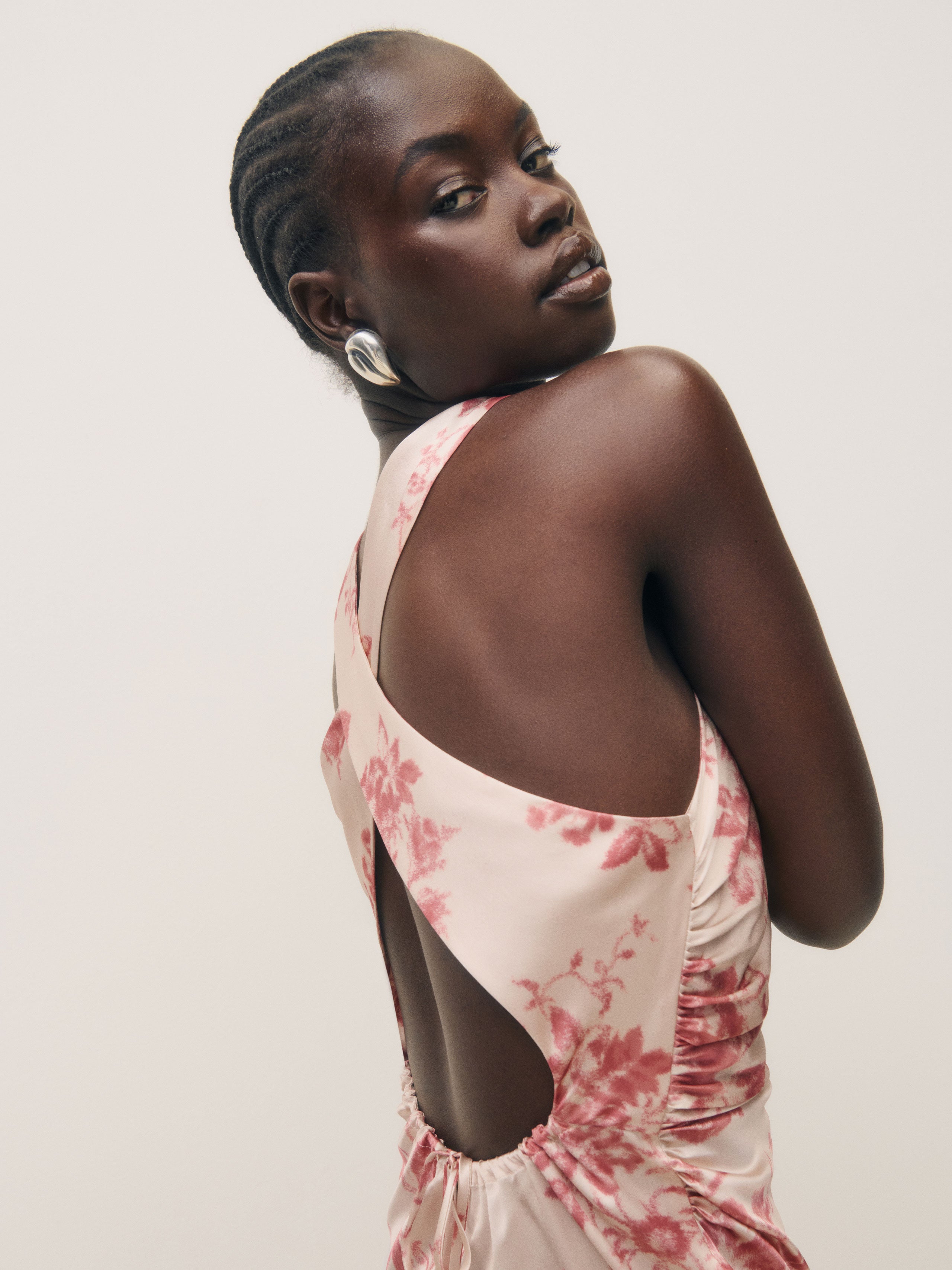 You flirt. Shop the Anaiis Silk Dress from Reformation, a maxi dress with a high neck and...