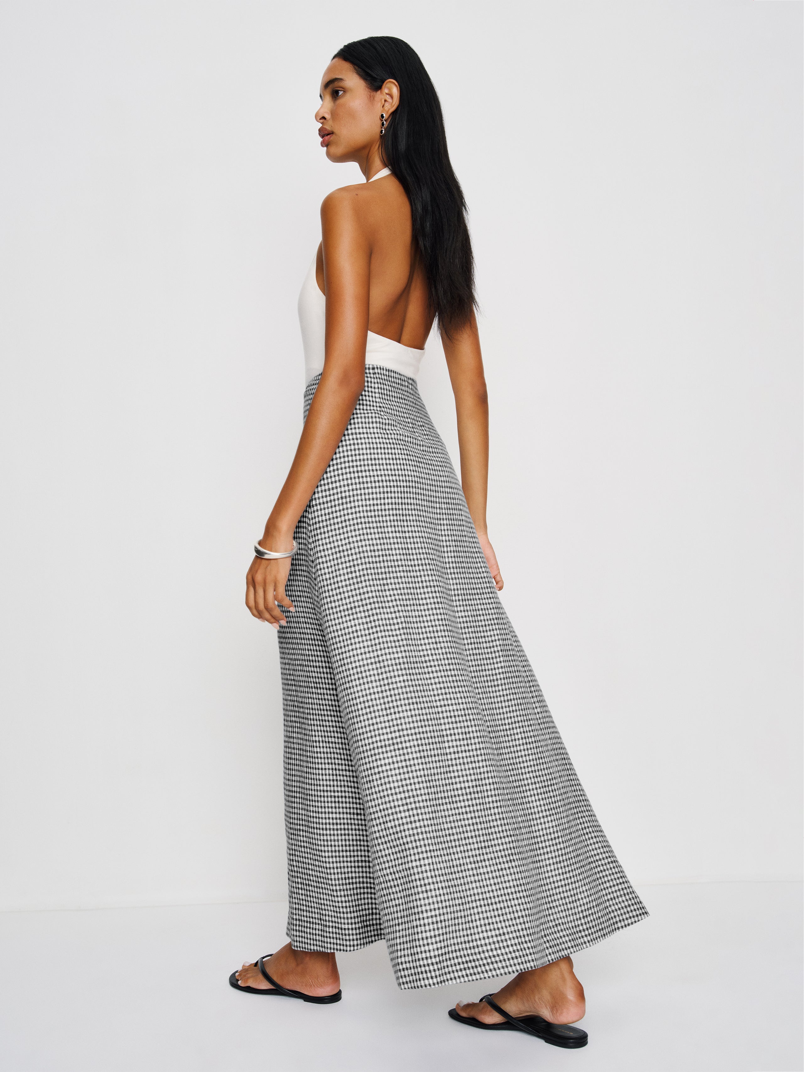 Wear the skirt. Shop the Andi Linen Maxi Skirt from Reformation, a maxi skirt with a high rise and button front.