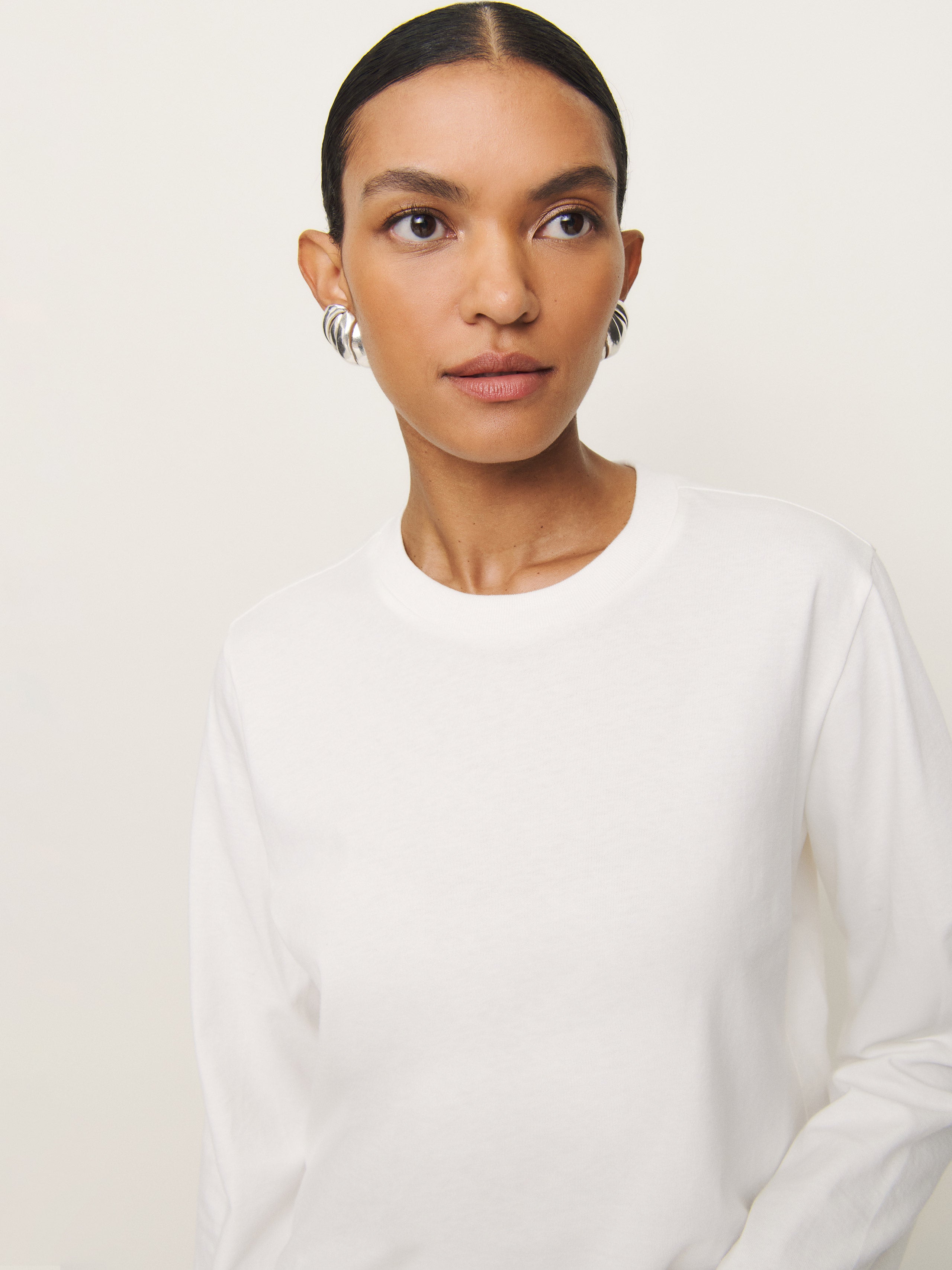 Shop the Asher Oversized Long Sleeve Tee from Reformation, a full-length sweatshirt with a relaxed fit and...