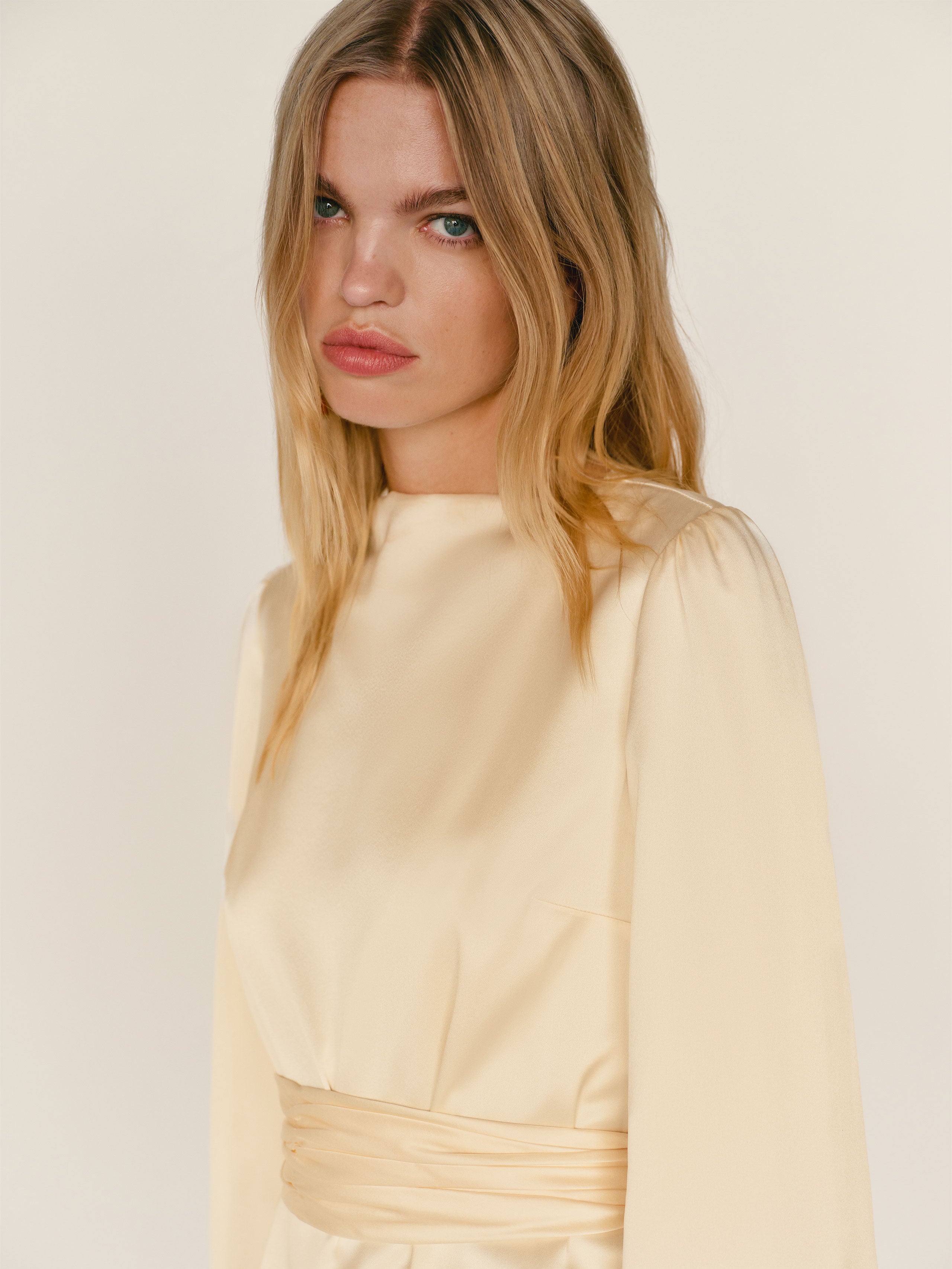 Who, me. Shop the Astrid Silk Dress from Reformation, a dress with bell sleeves and an adjustable...