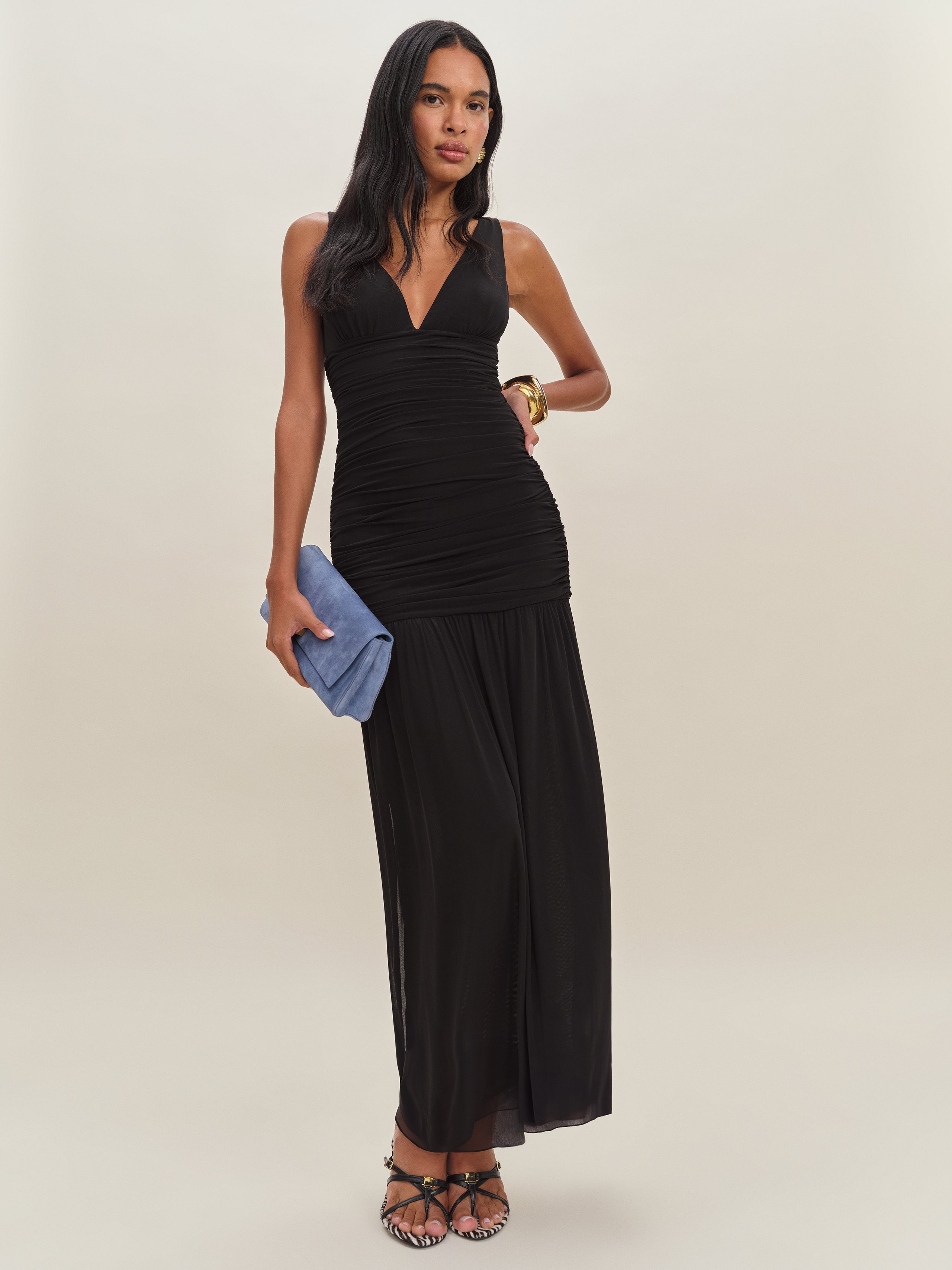 How classic. Shop the Aura Knit Dress from Reformation, a sleeveless maxi dress with a deep v-neckline...