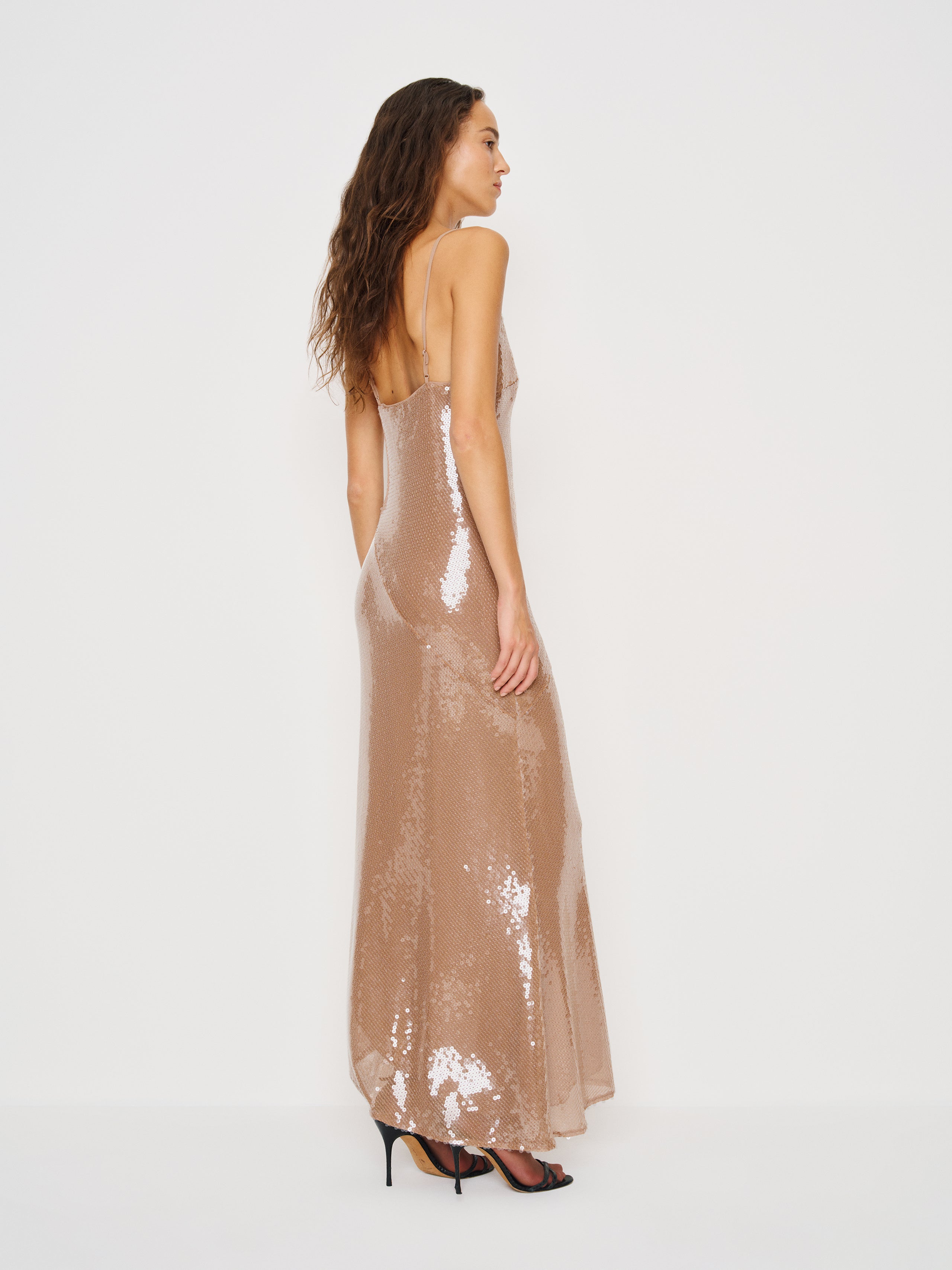 Who, me. Shop the Aurore Dress from Reformation, a maxi dress with a V-neckline, an asymmetrical hem, and works for weddings, dates, or any night out.
