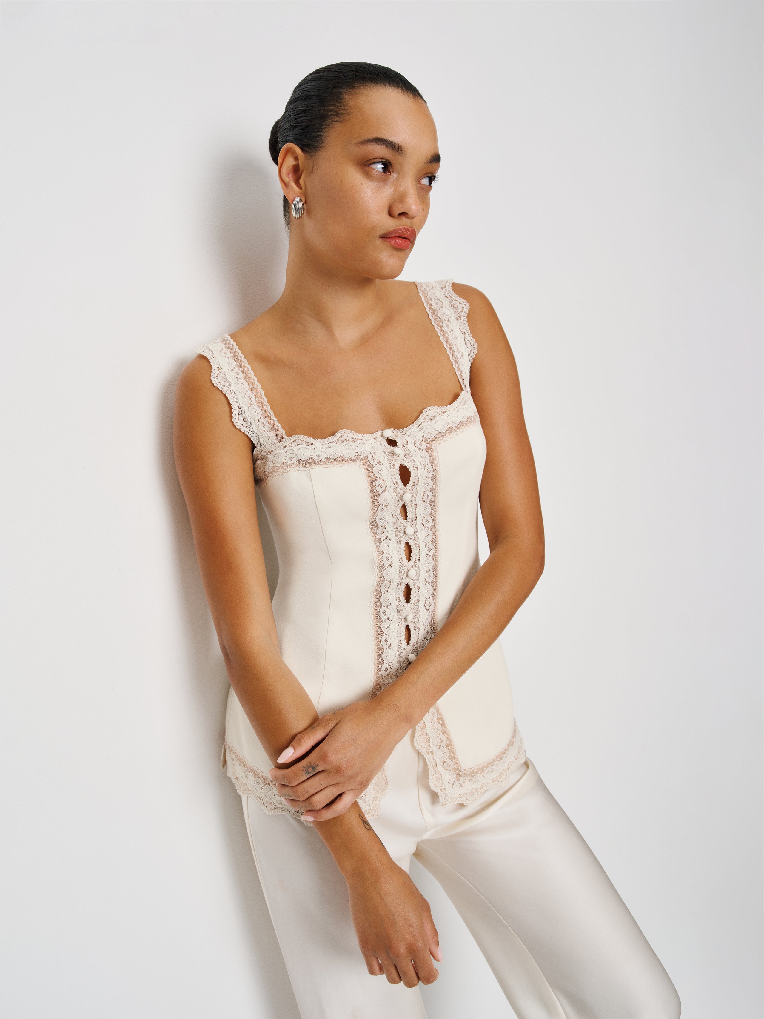 Detail oriented. Shop the Austria Top from Reformation, a sleeveless top with functional button closure in the front and an adjustable tie detail in the back.