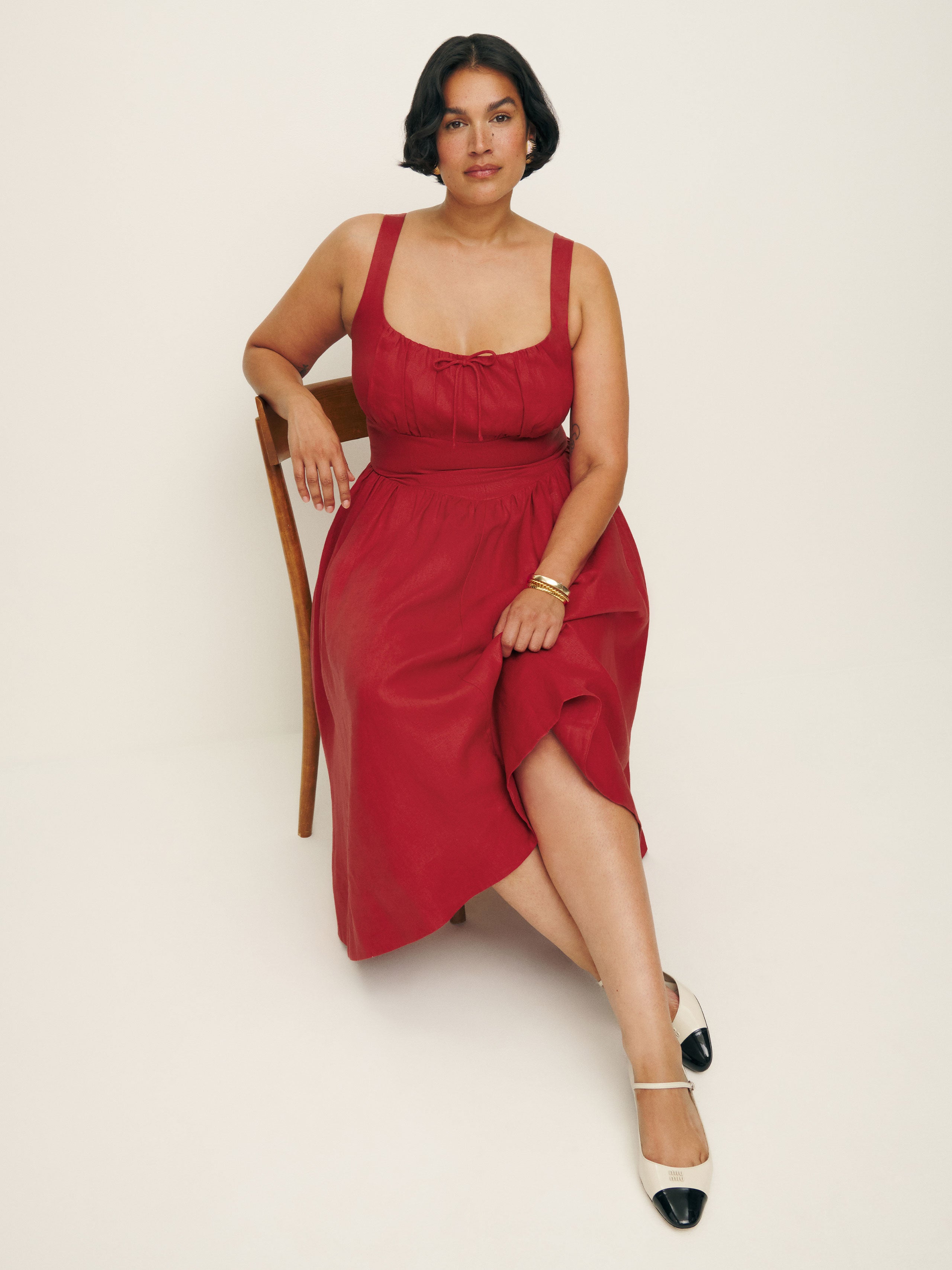 Easy breezy. Shop the Balia Linen Dress ES from Reformation, a sleeveless maxi dress with a scoop neckline and front tie.