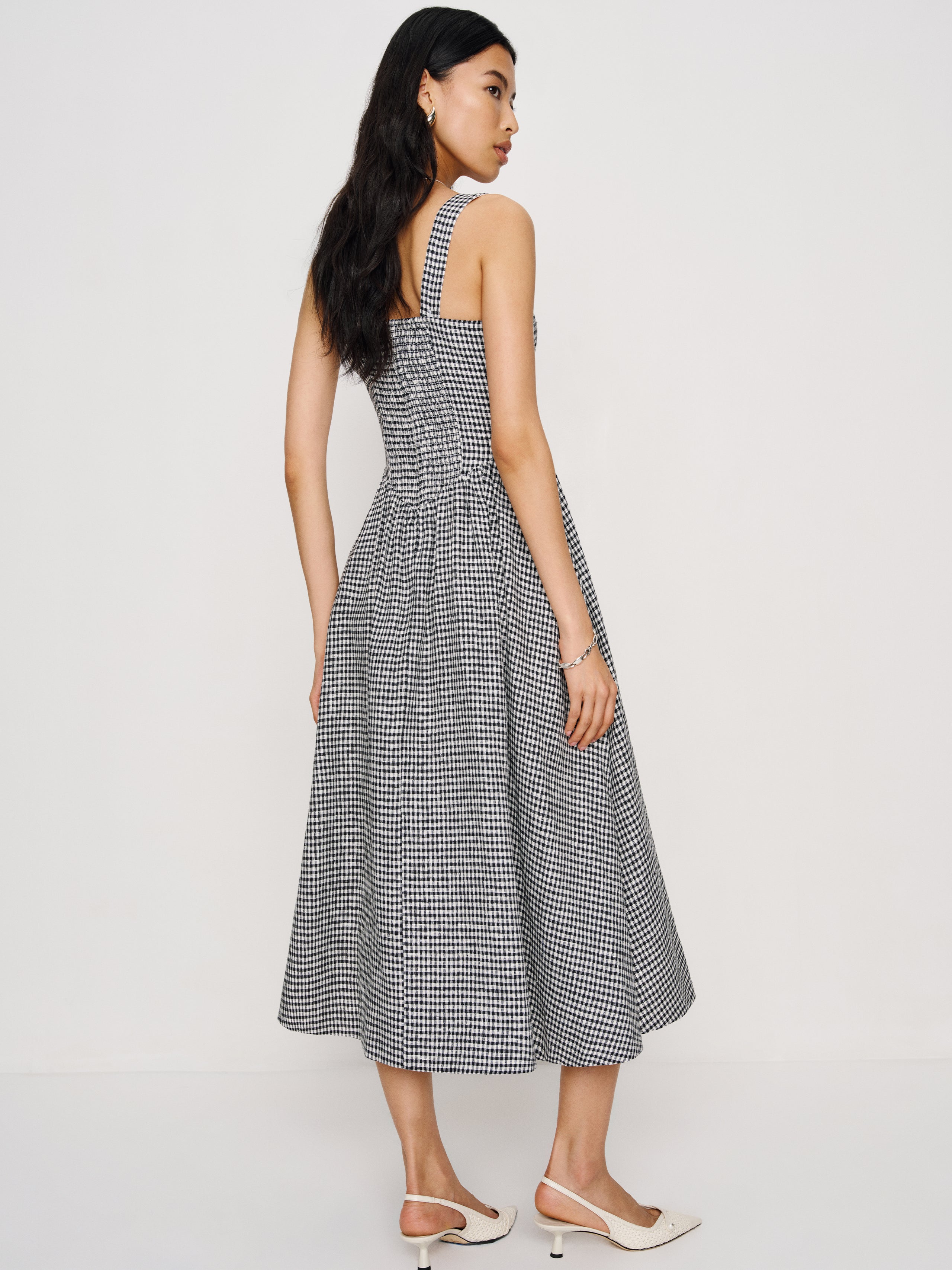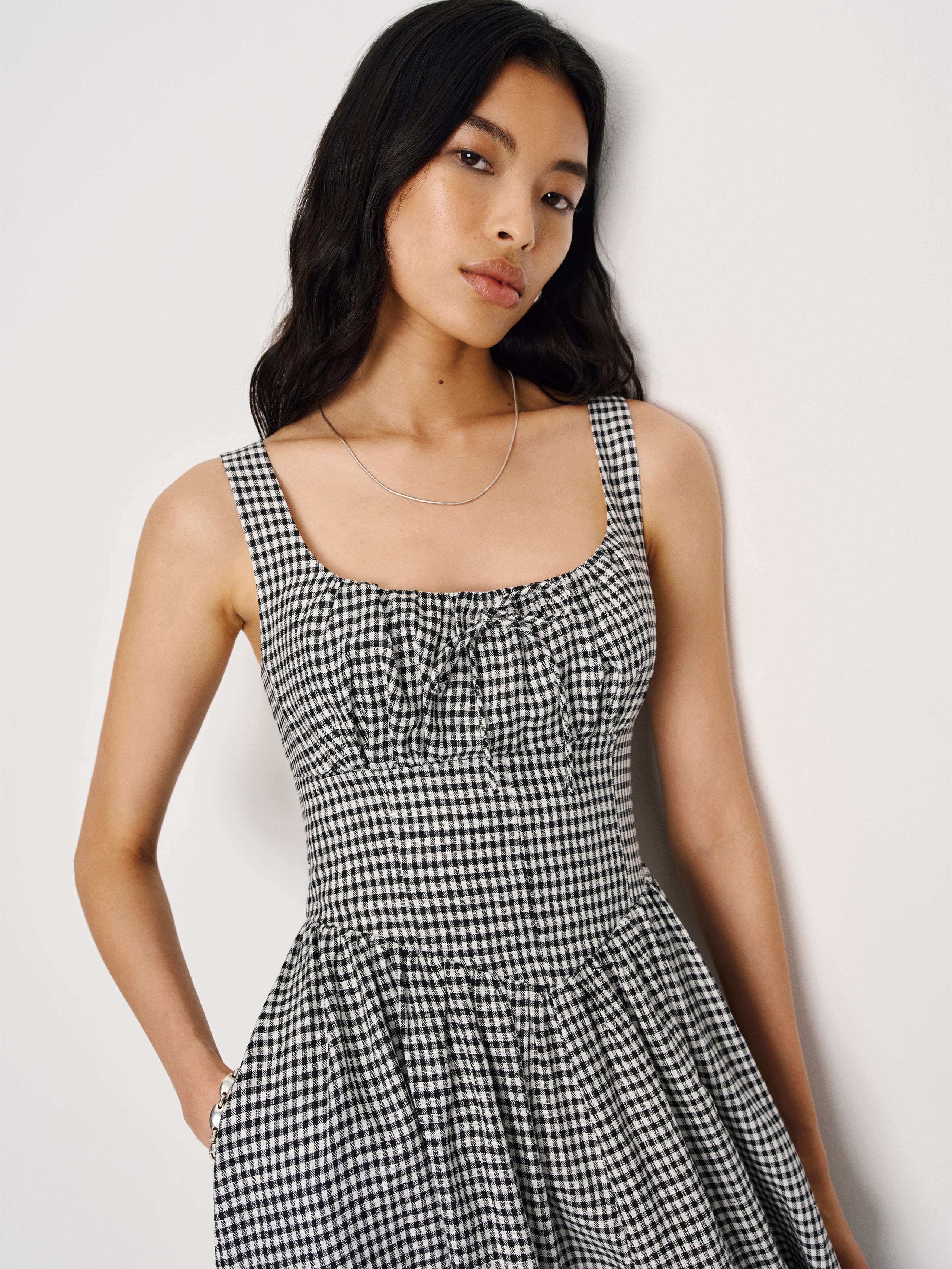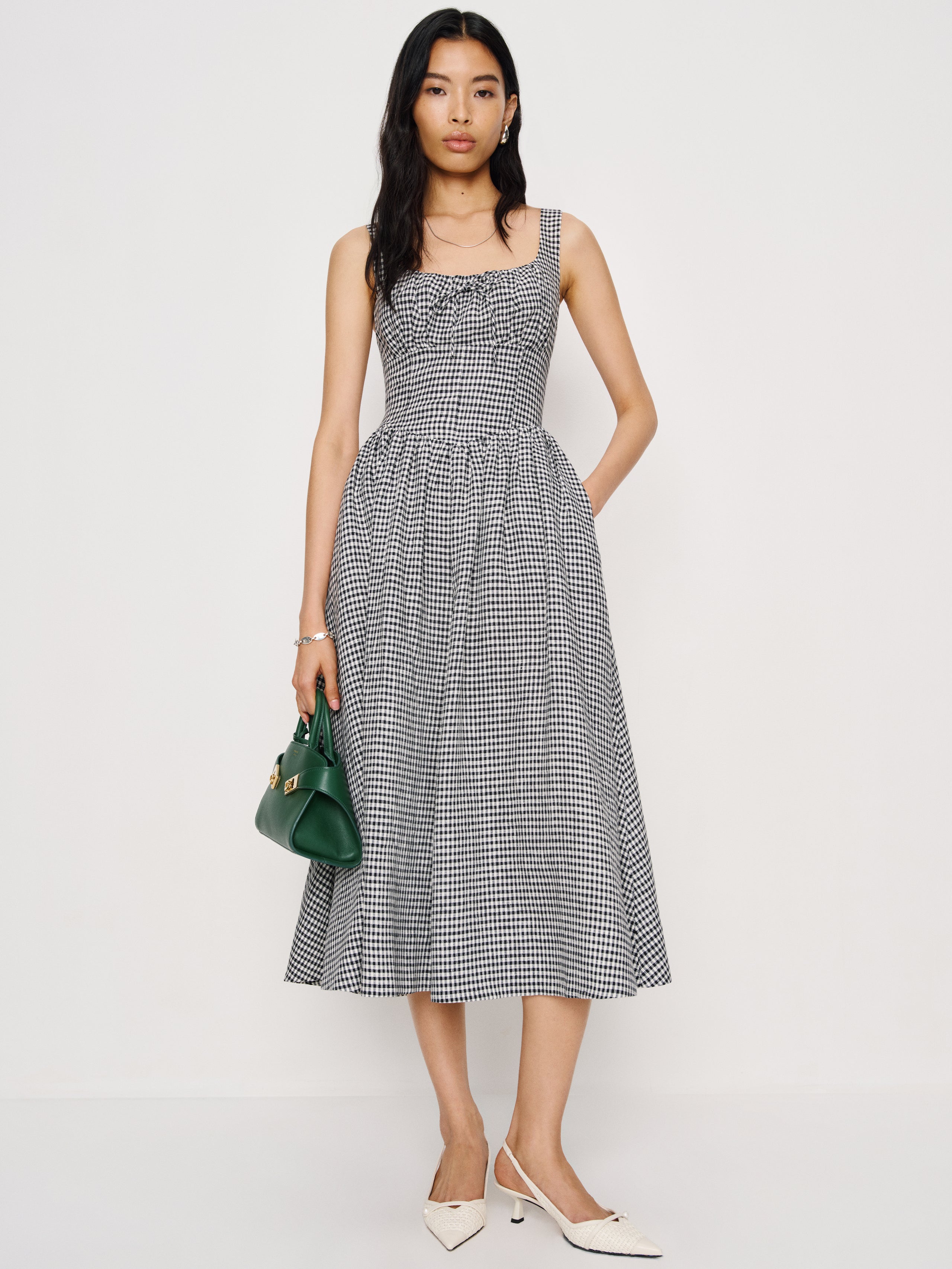 Easy breezy. Shop the Balia Linen Dress from Reformation, a sleeveless maxi dress with a drop waist, scoop neckline, and front tie.