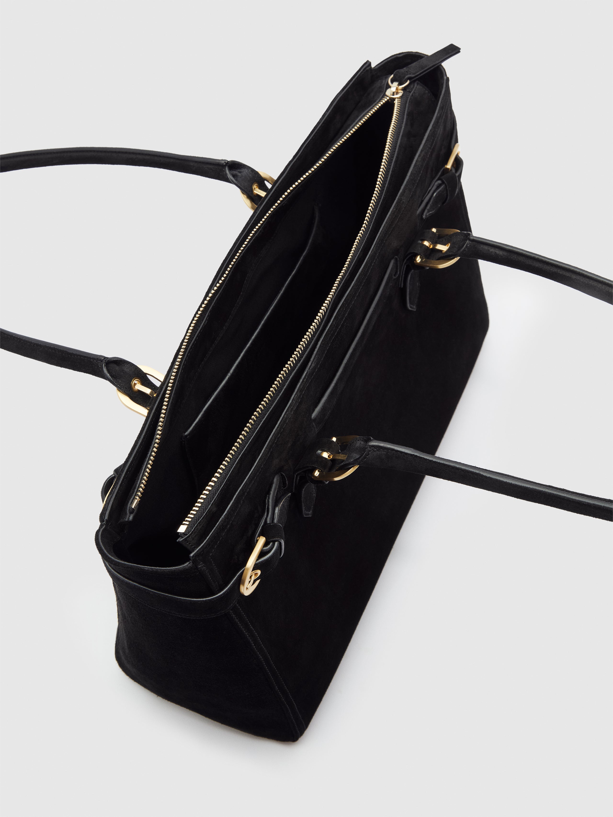 Have we met. Shop the Beatrice Tote Bag from Reformation, a tote bag with zipper closure and buckle details. Good for work, and whatever you're doing after.