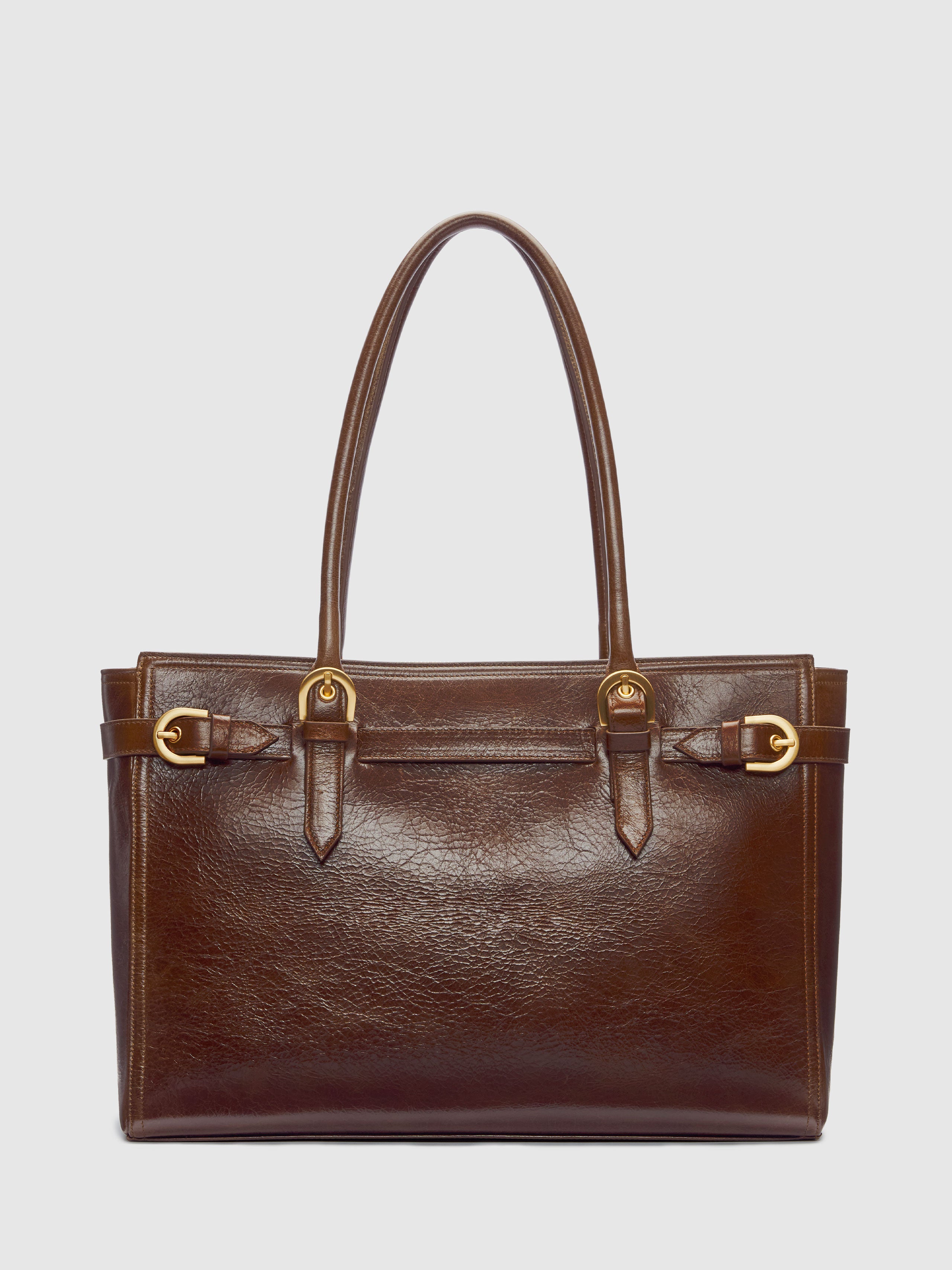 Have we met. Shop the Beatrice Tote Bag from Reformation, a tote bag with zipper closure and buckle details. Good for work, and whatever you're doing after.