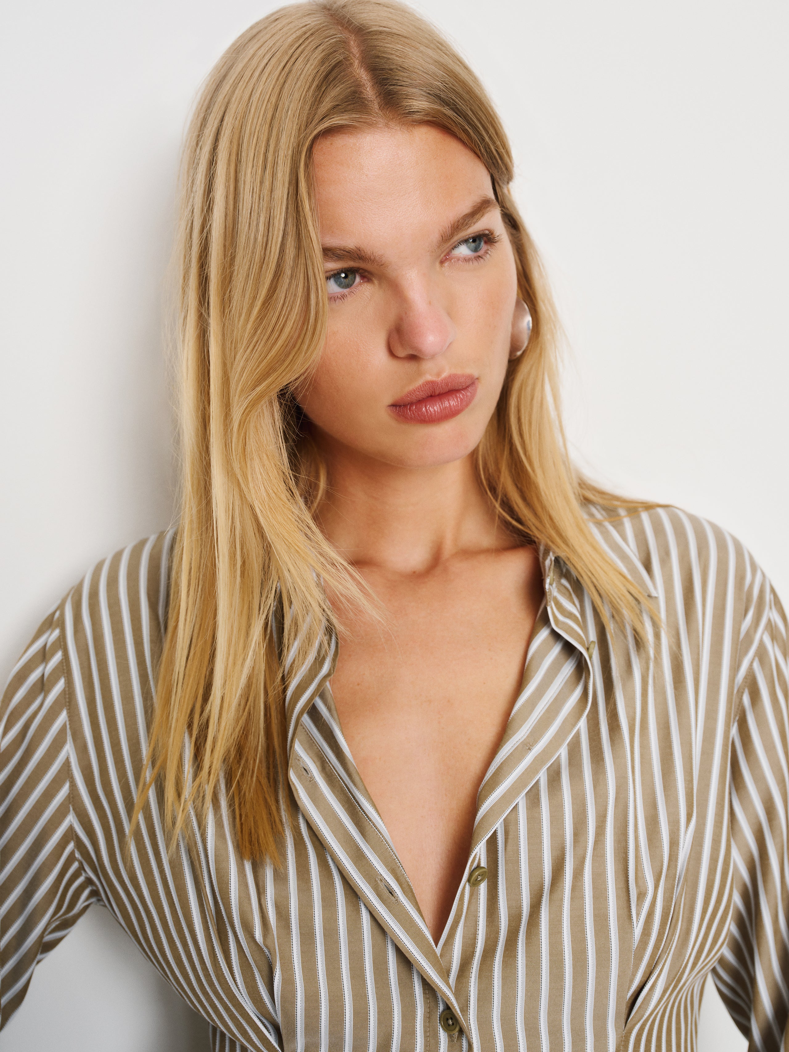 Buttoned up. Shop the Becker Shirt from Reformation, a long-sleeve top with a collared neckline, button front, and tailored waist.