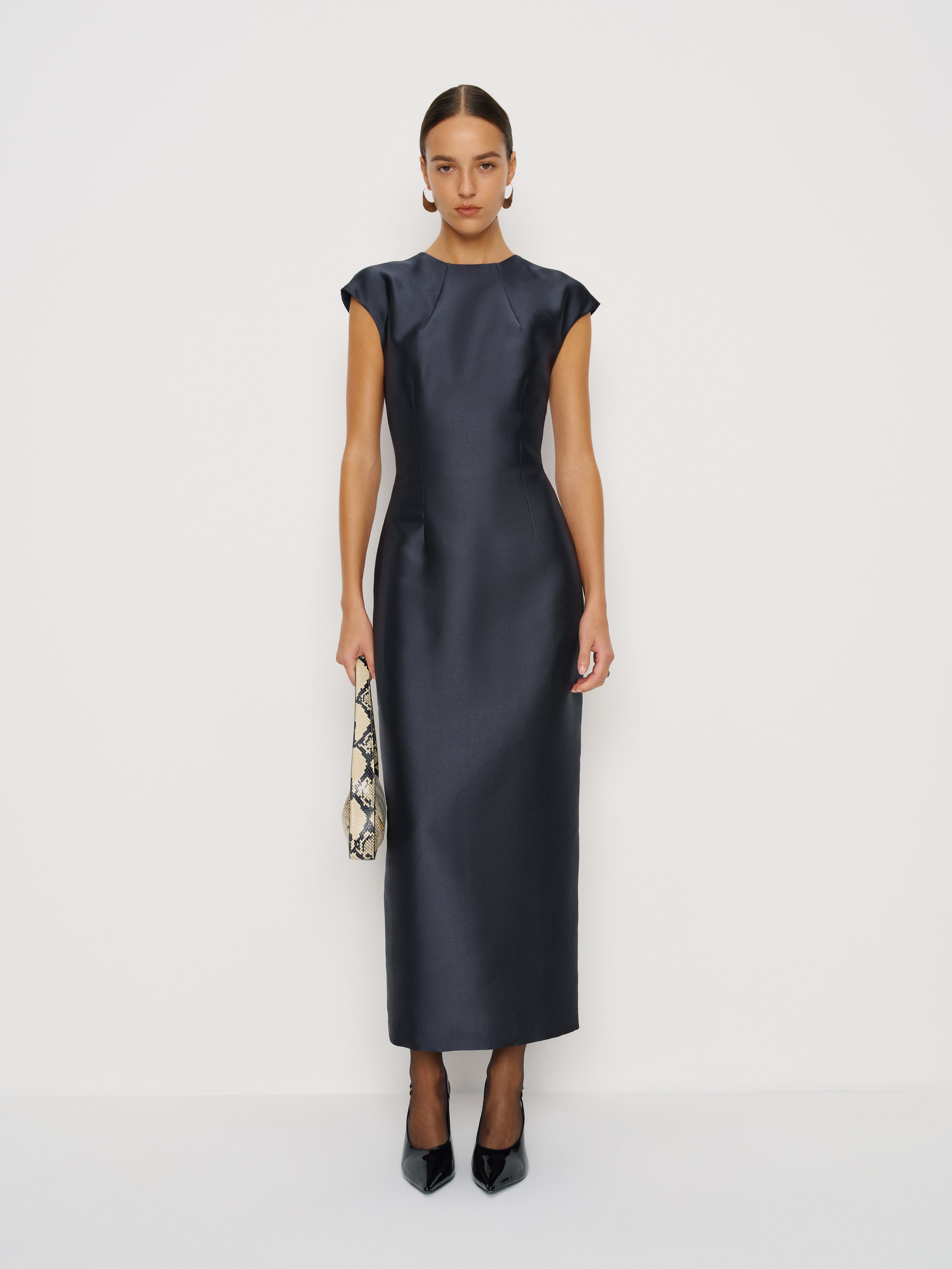 How classic. Shop the Belden Dress from Reformation, a short-sleeved maxi dress with a high neckline and back slit. Dress it up or dress it way up.