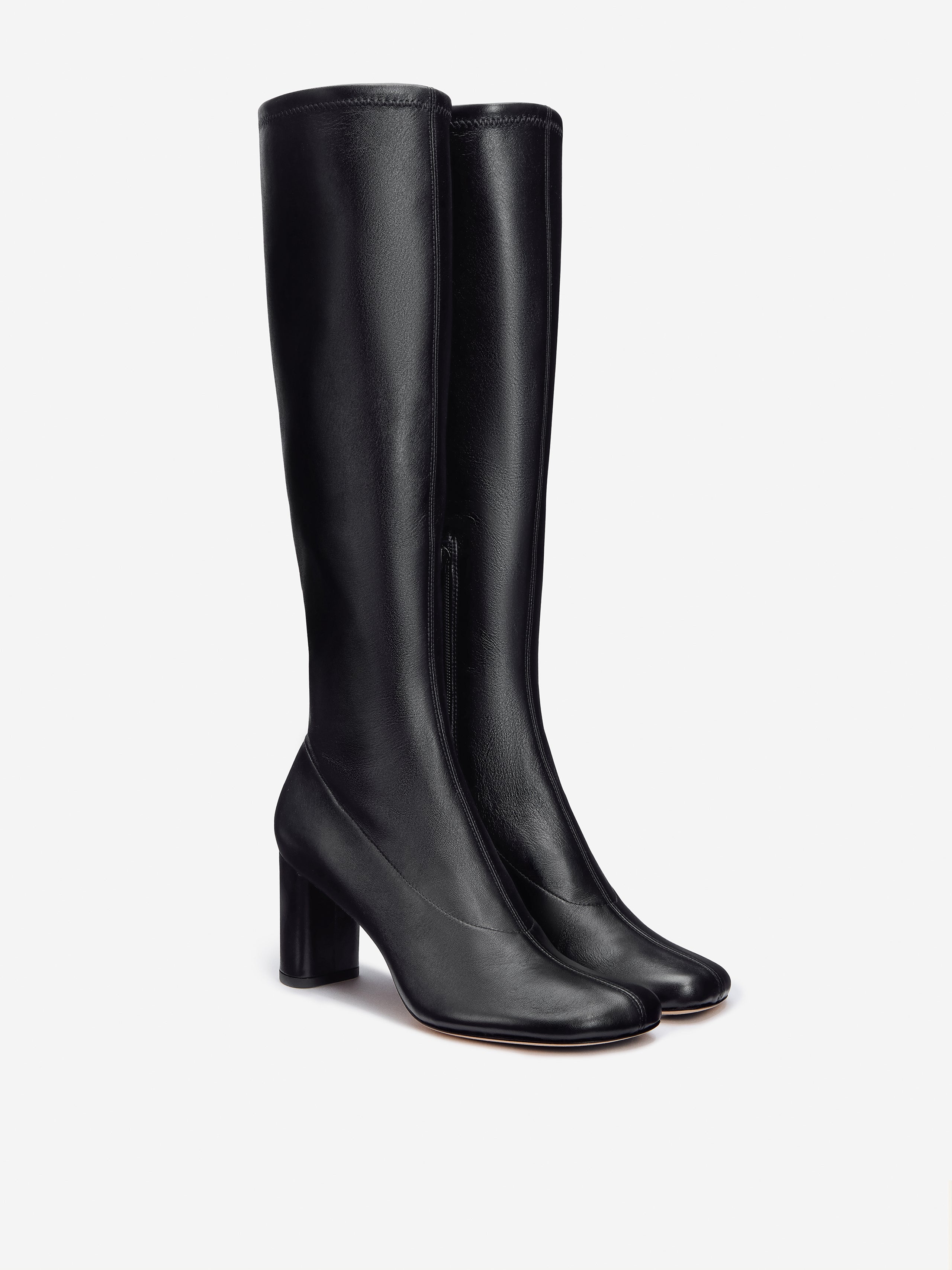 Wear the boots. Shop the Belinda Knee High Boot from Reformation, a knee high boot with a round toe and block heel.