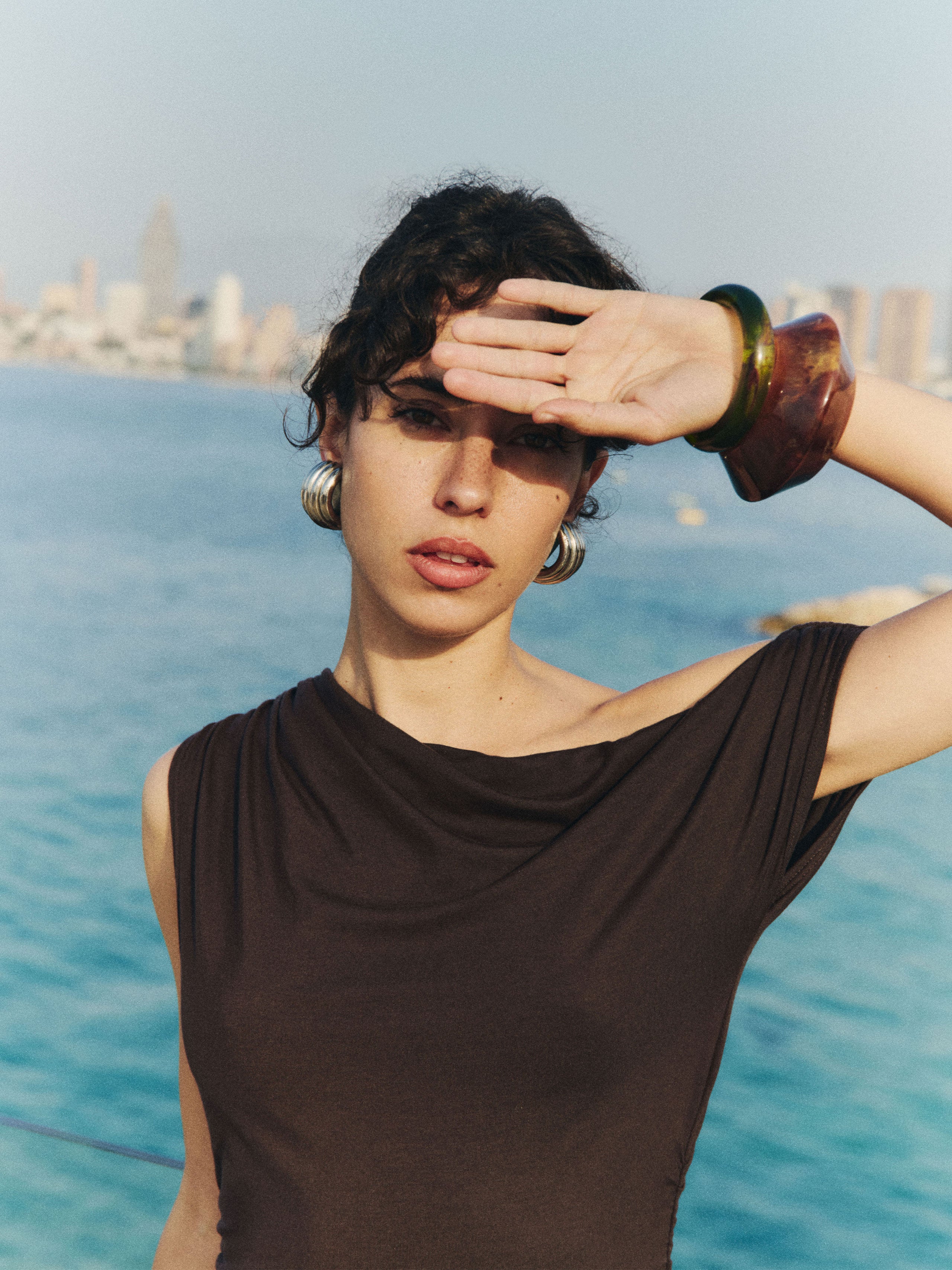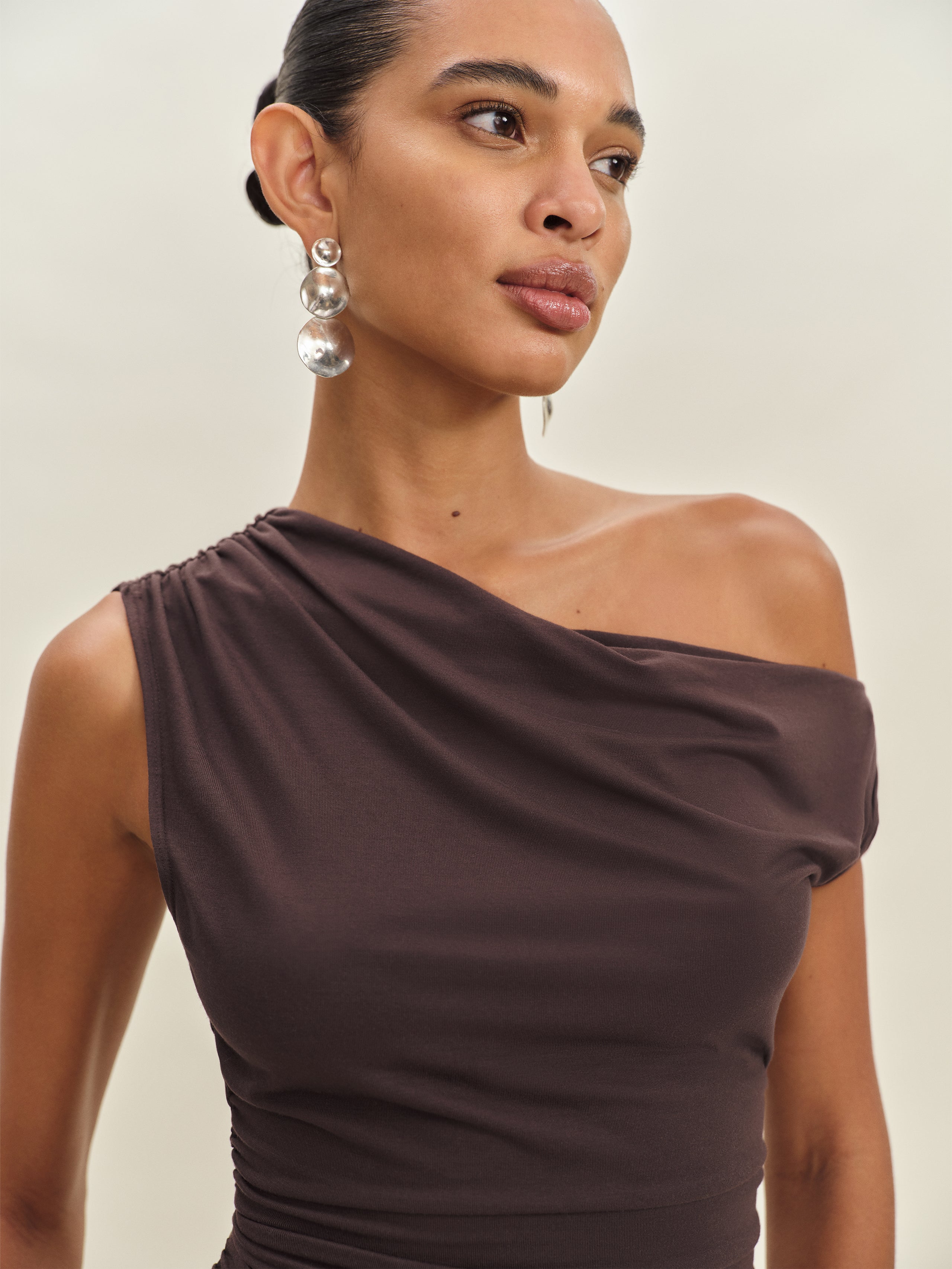 Don’t forget to stretch. Shop the Belle Knit Dress from Reformation, a sleeveless mini dress with an asymmetrical neckline and ruched detailing.