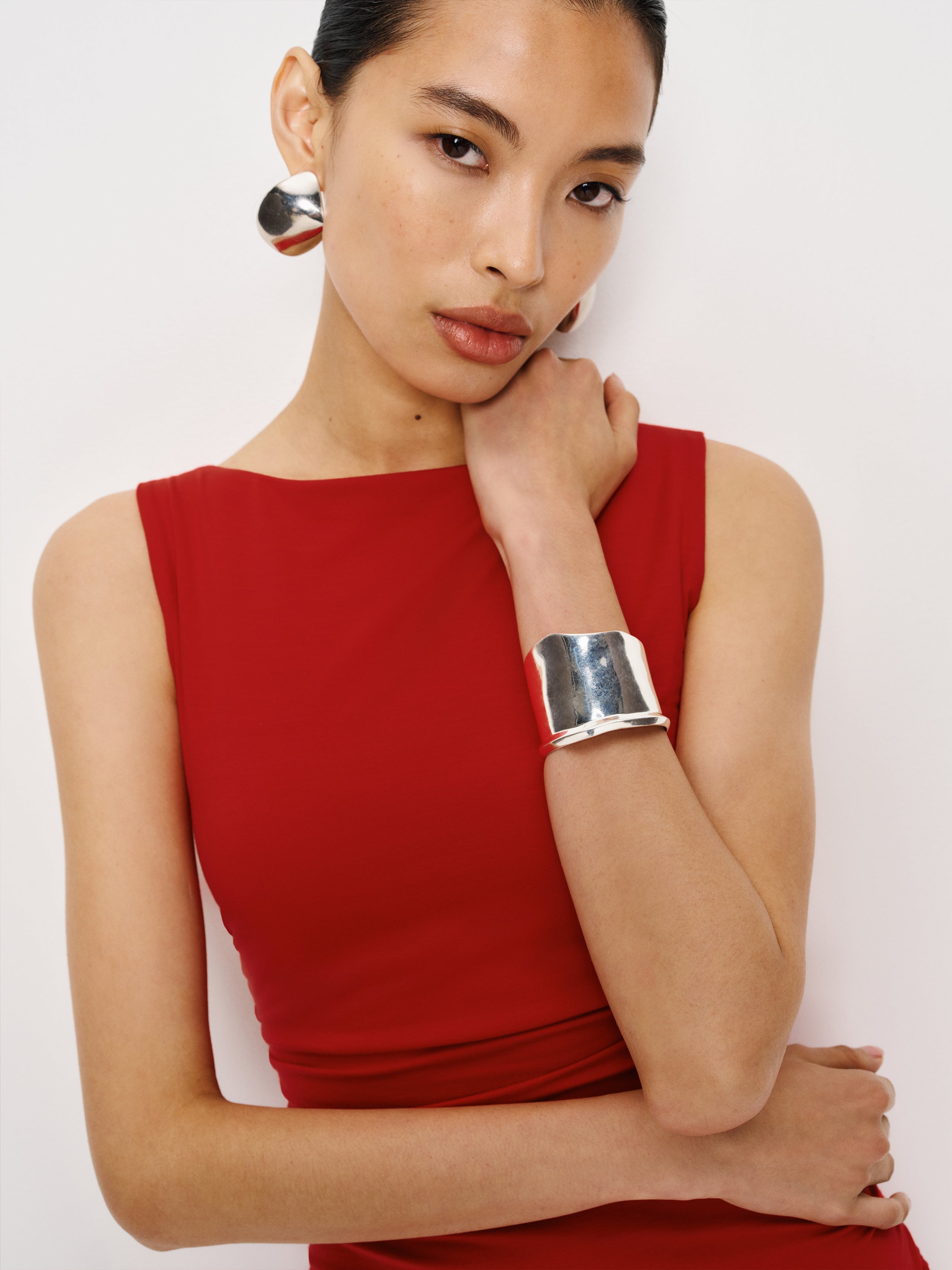Get some compliments. Shop the Benson Knit Dress from Reformation, a sleeveless midi dress with a boat neckline and ruching throughout.