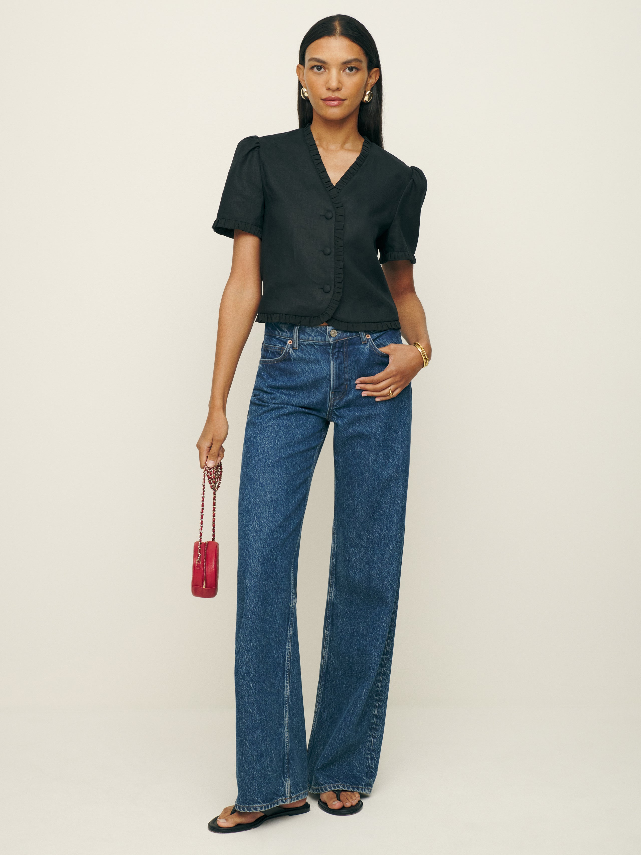 It's called liking nature. Shop the Bess Linen Top from Reformation, a puff short sleeve, button down...