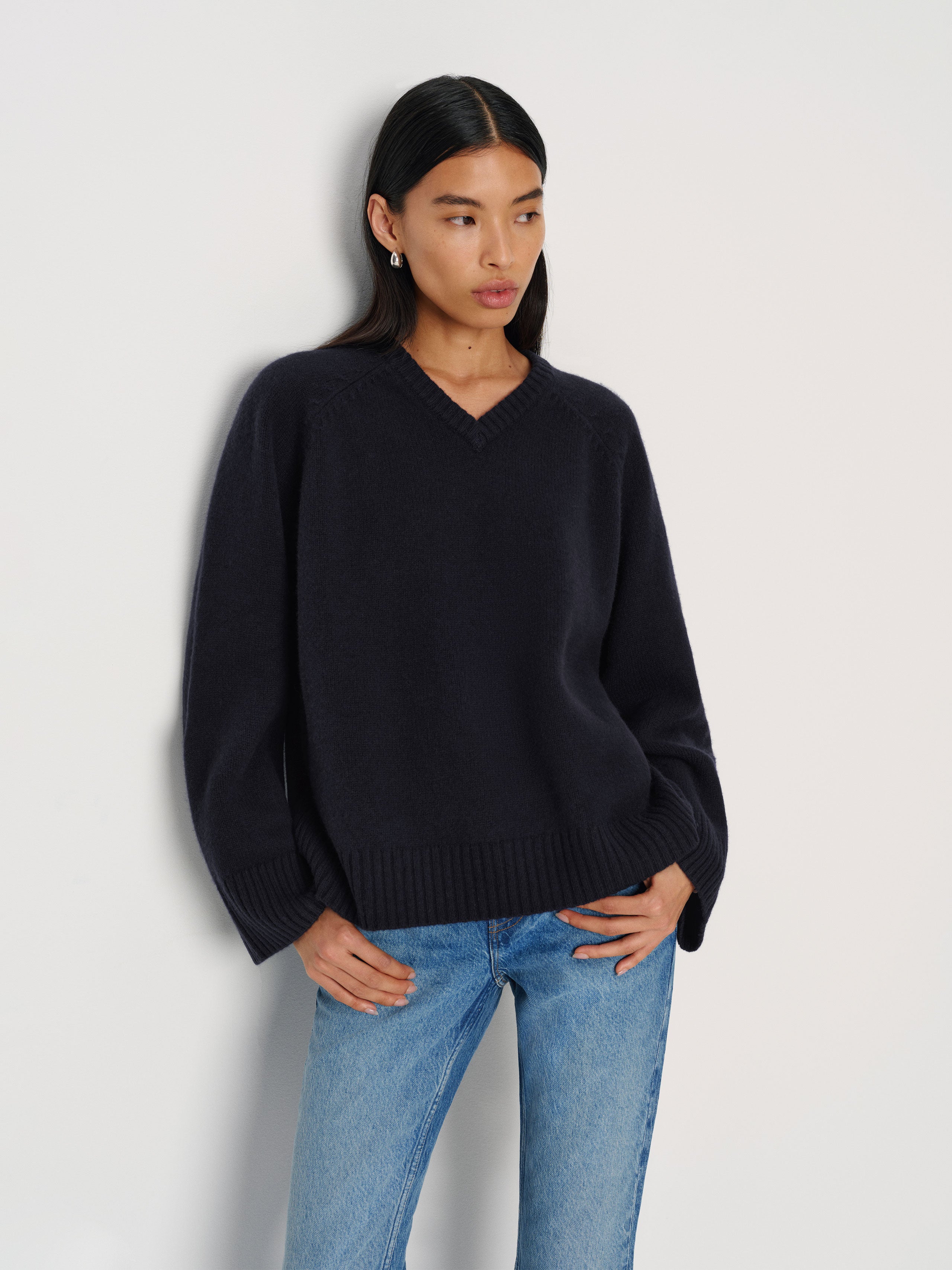 Warm up. Shop the Beth Regenerative Wool V-Neck from Reformation, a sweater with ribbing at the cuffs,...