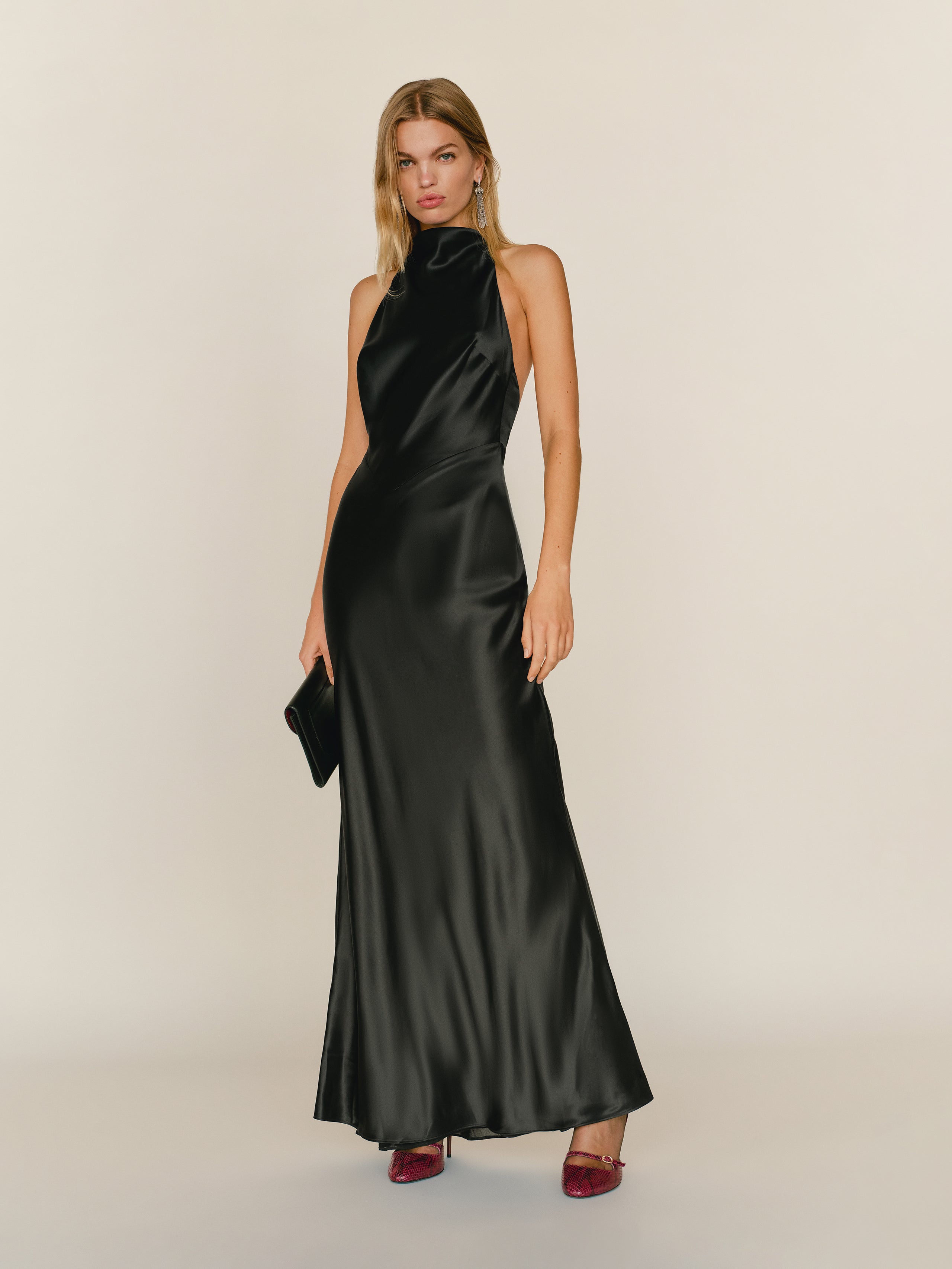 On my way. Shop the Bianca Silk Dress from Reformation, a dress with a high neckline and...