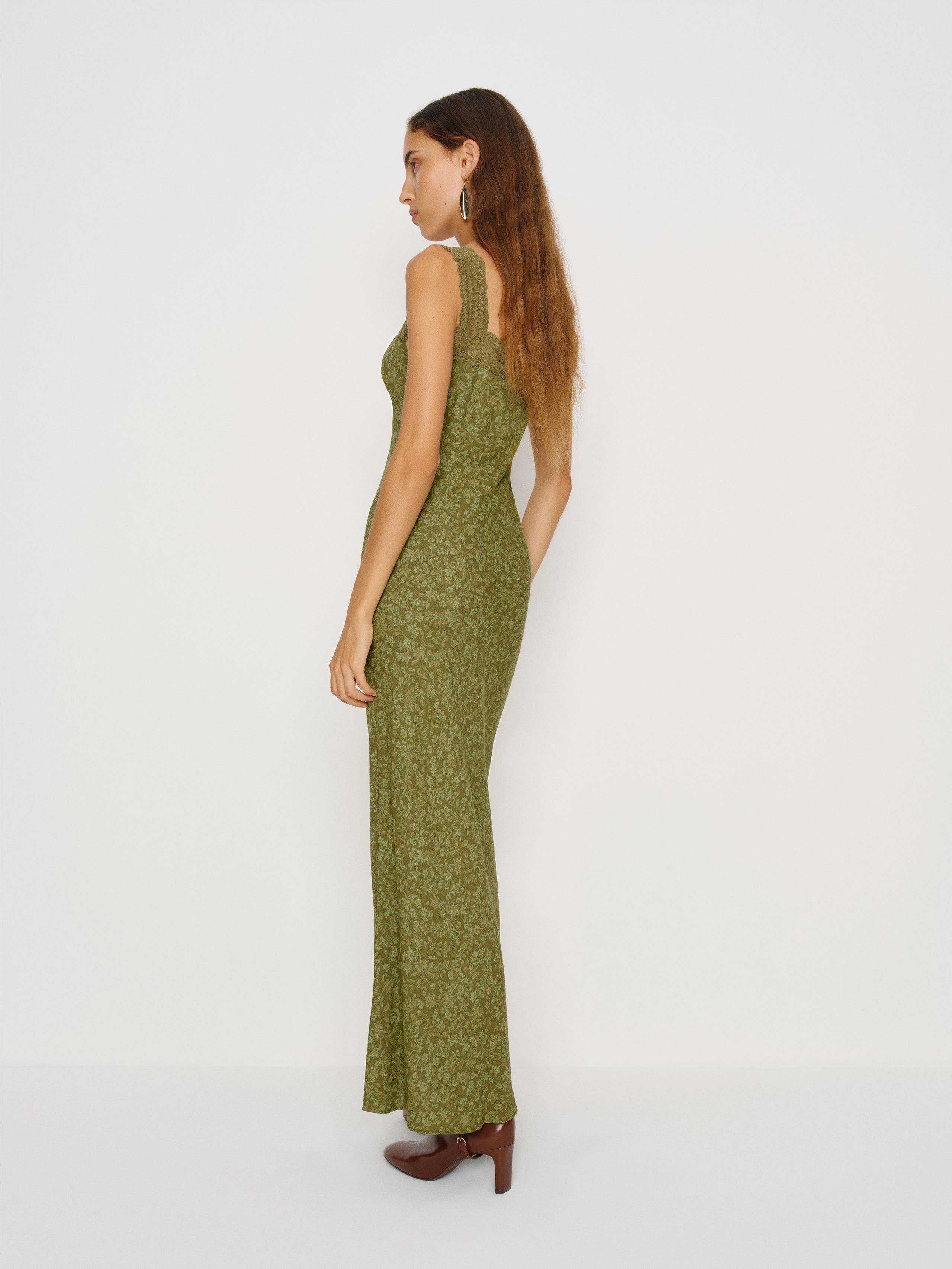 Wear the dress. Shop the Bobbie Dress from Reformation, a sleeveless midi dress with a square neckline, lace detailing, and slim fit.