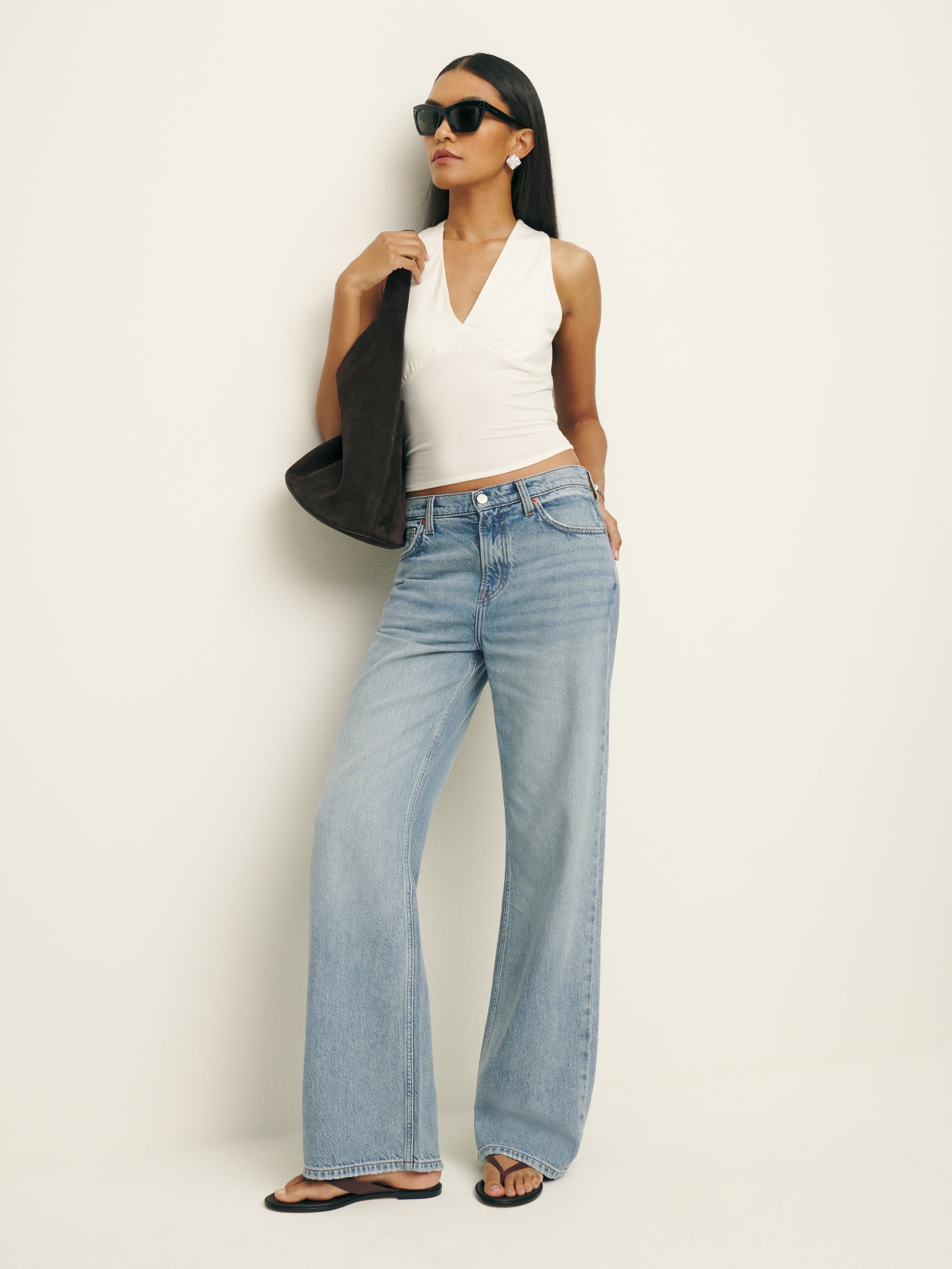 Soft and stretchy if you're into that. Shop the Bowie Knit Top from Reformation, is a knit top with a deep v-neckline.