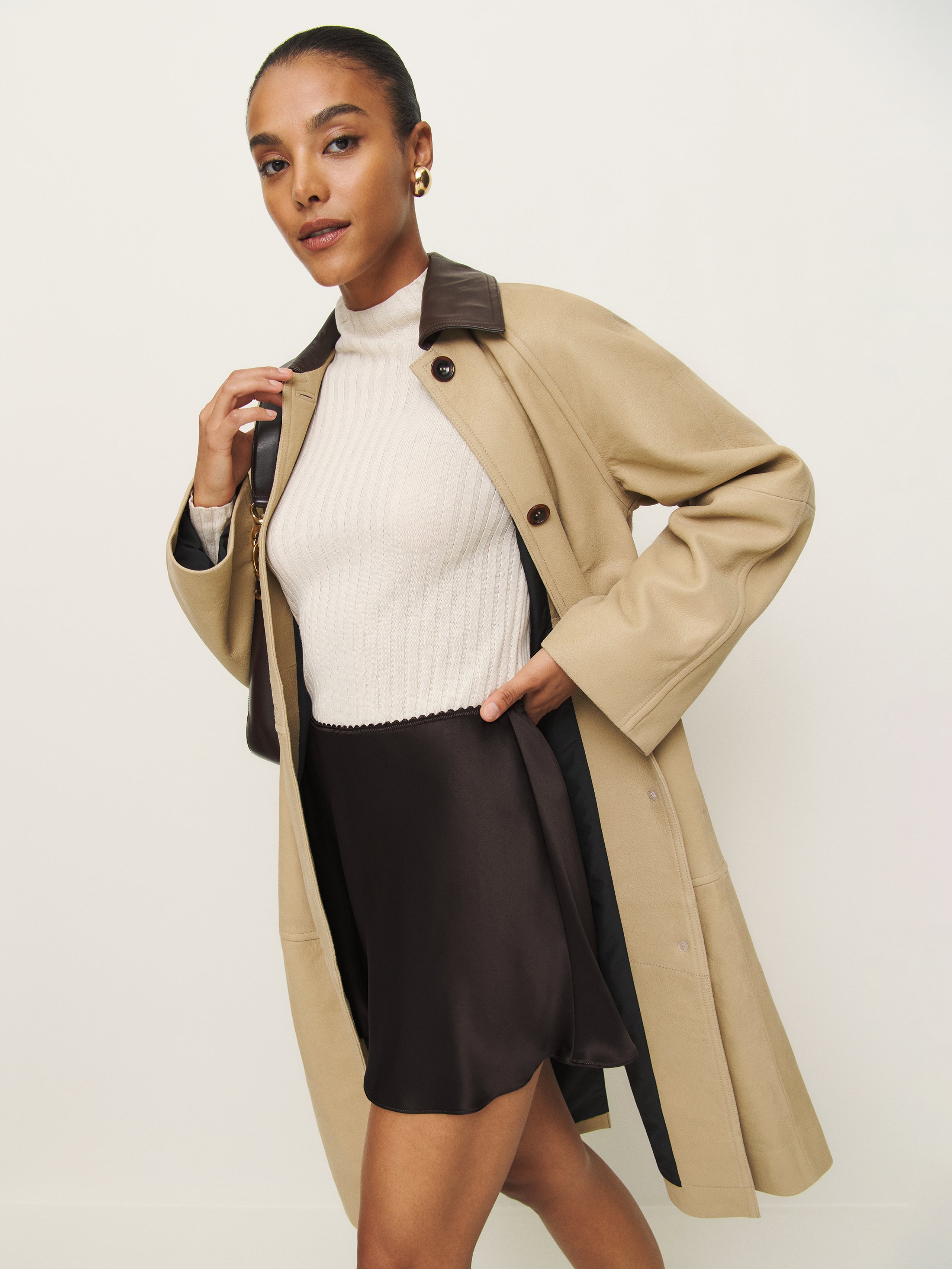 Wear the skirt. Shop the Brandy Satin Skirt, a sustainable skirt from Reformation.