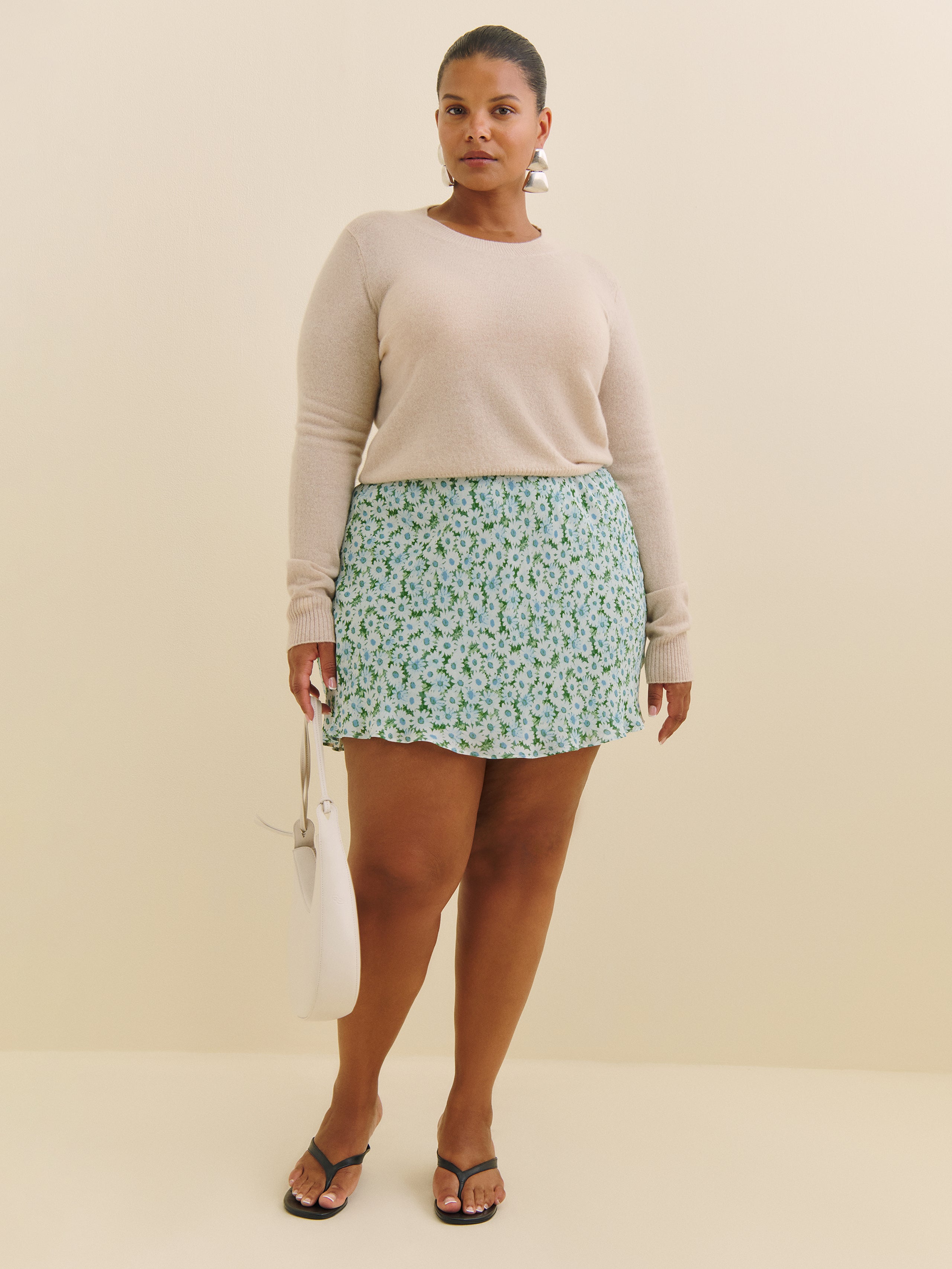 Let those legs out. Shop the Brandy Skirt ES from Reformation, a mid-rise mini skirt with lace...
