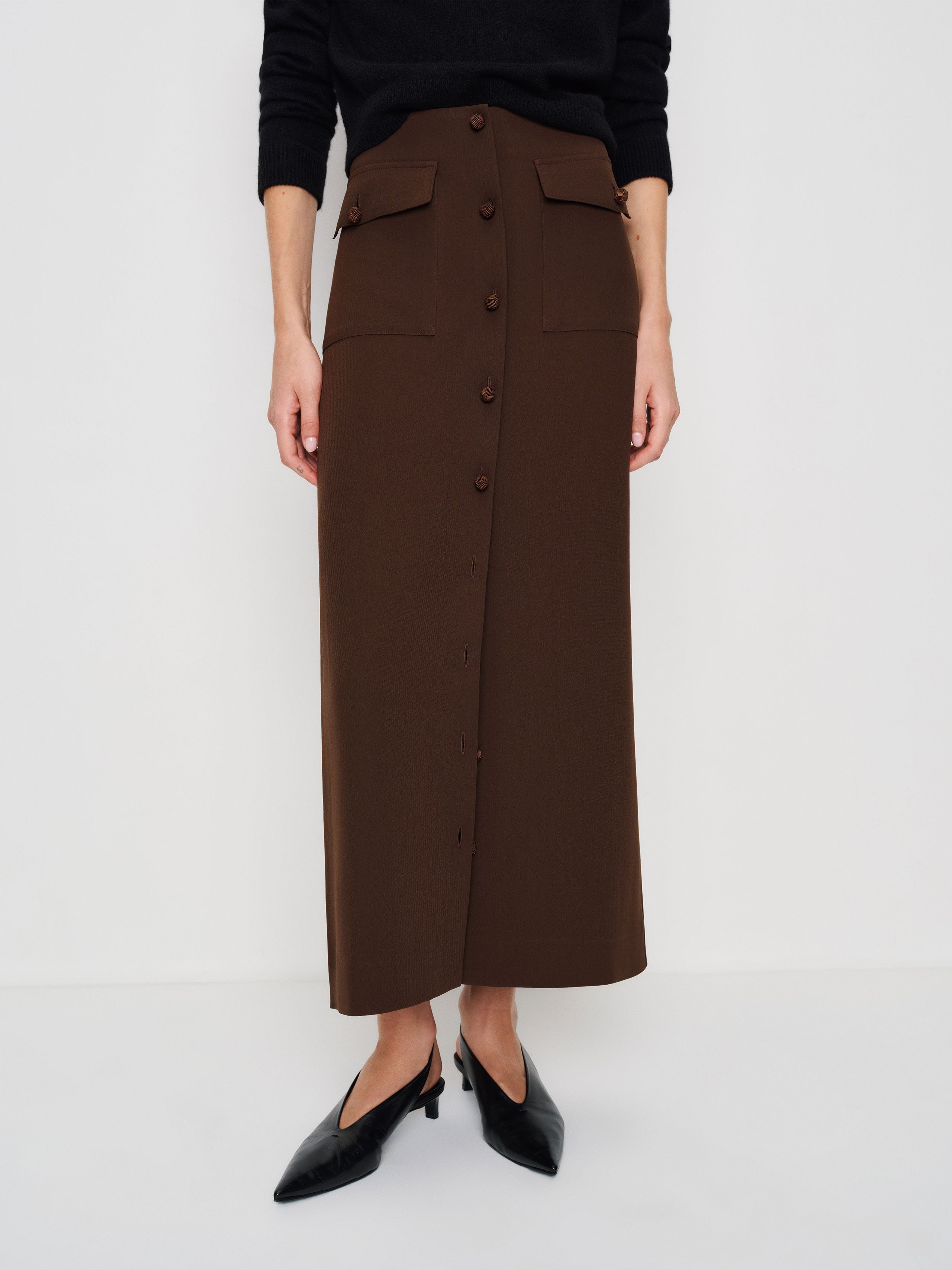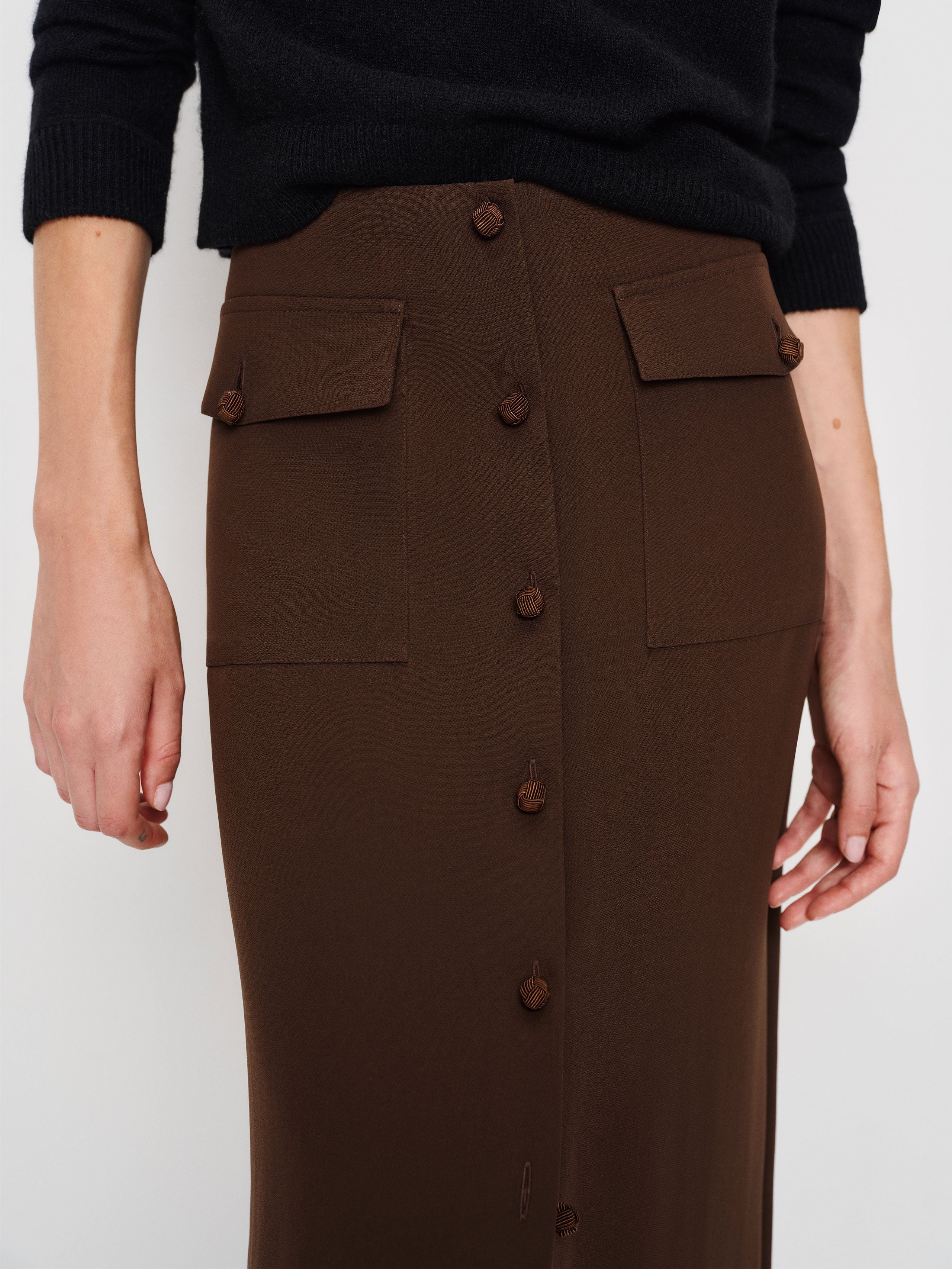 Get some compliments. Shop the Britt Skirt from Reformation, a midi skirt with a front slit, button detailing, and front patch pockets.