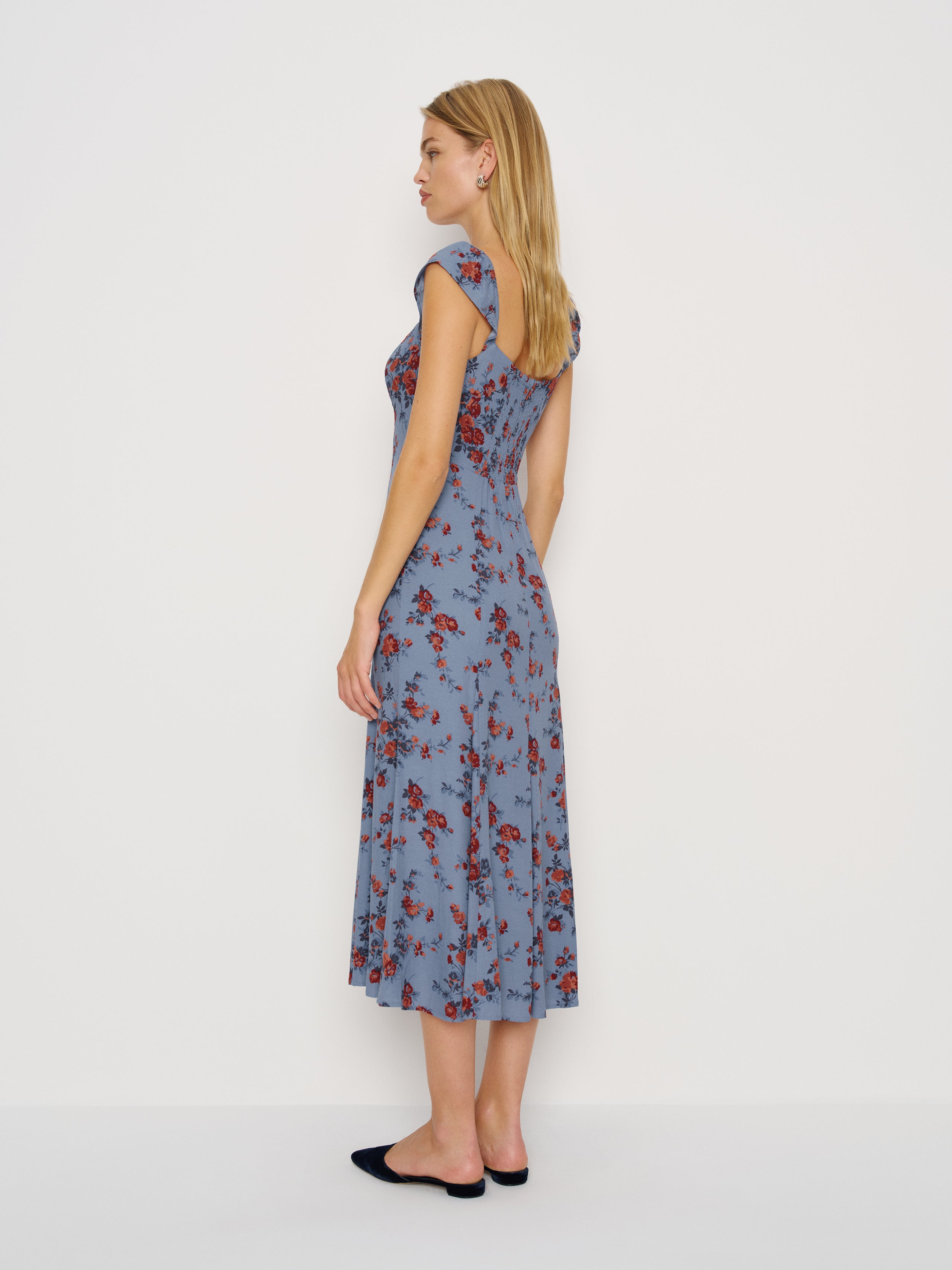Wear the dress. Shop the Bryson Dress from Reformation, a midi dress with short, cap sleeves, a sweetheart neckline and an A-line silhouette.