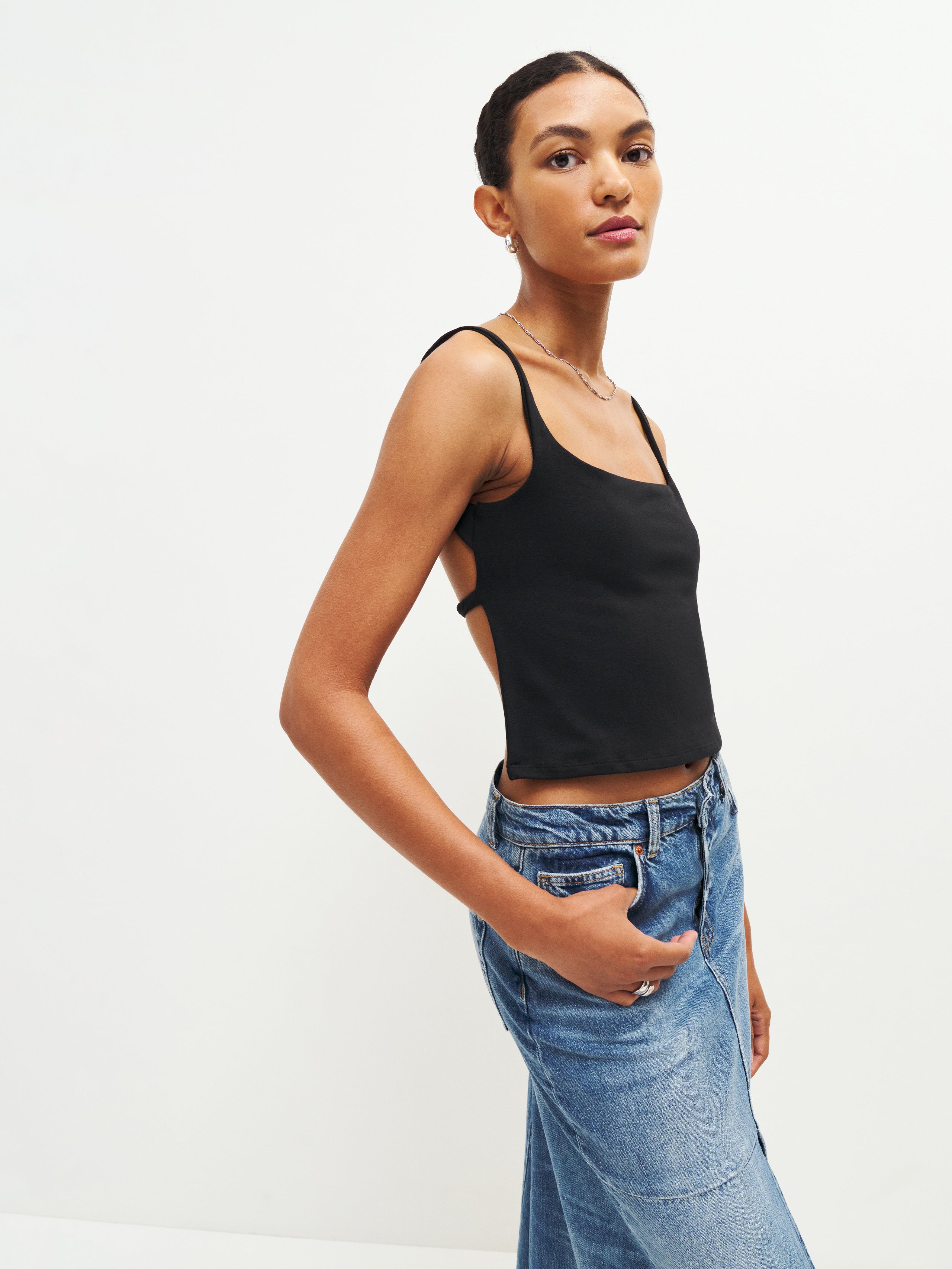 Throw on and go. Shop the Cairo Knit Top from Reformation, a sleeveless, relaxed fitting top with a straight neck.