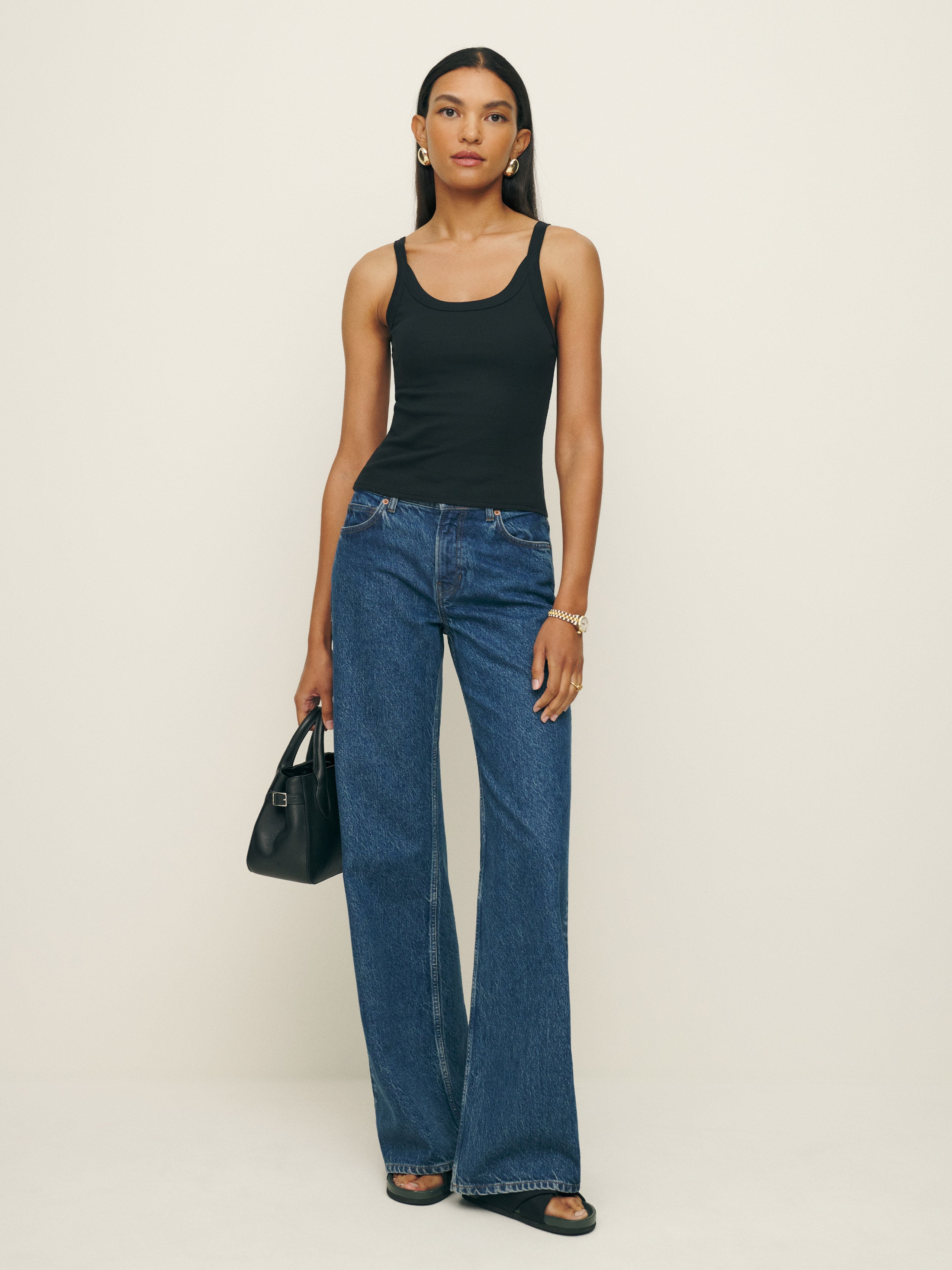 You make it look easy. Shop the Calie Top from Reformation, a fitted tank top with a scoop neckline. It's soft and stretchy for an extra comfortable feel.