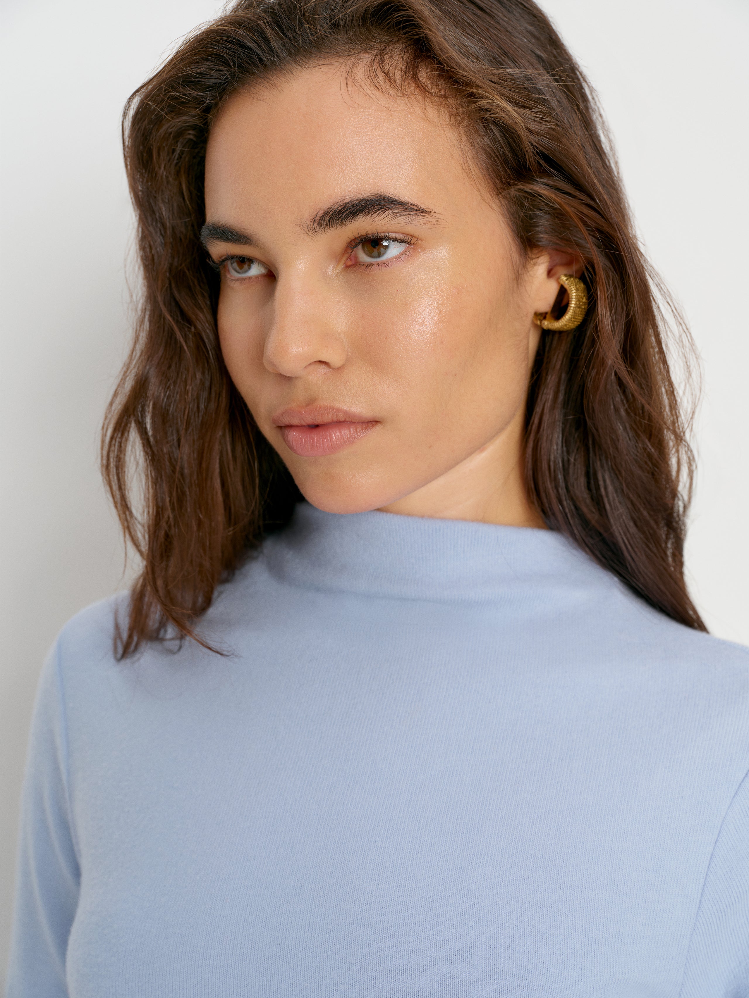 Cute top. Shop the Camille Knit Top from Reformation, a fitted top with a mock neckline. Wear it, wear it again, and then a few more times after that.