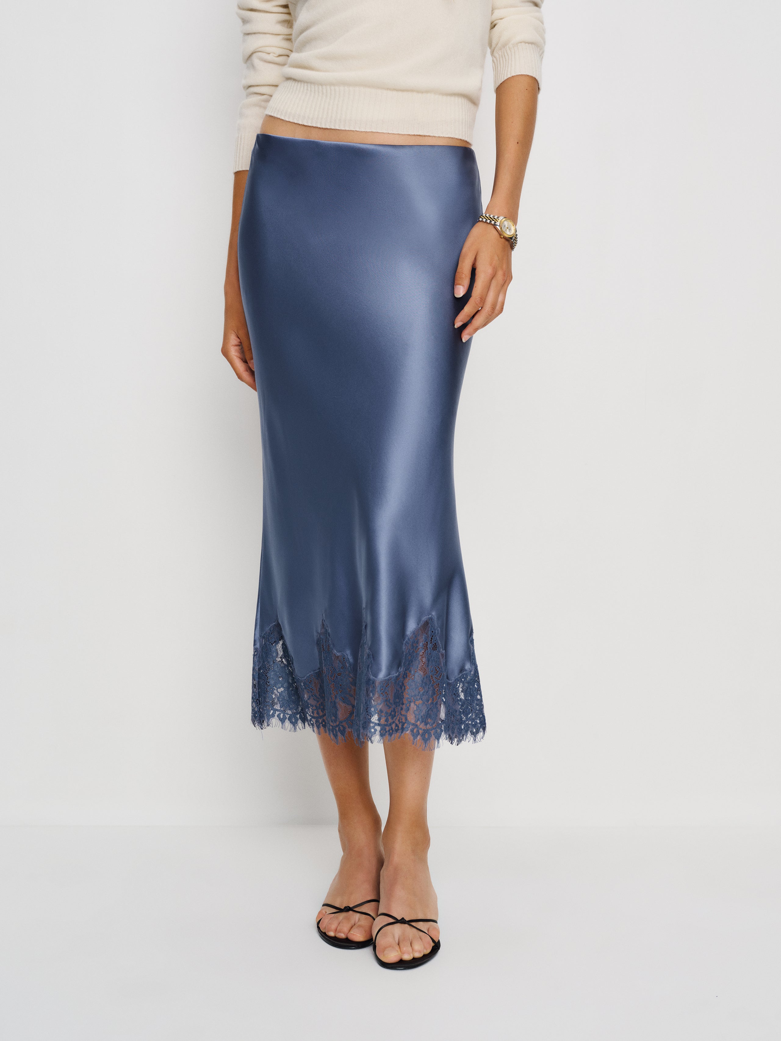 Looks great with a gust of wind. Shop the Carolina Silk Skirt from Reformation, a mid-rise midi...