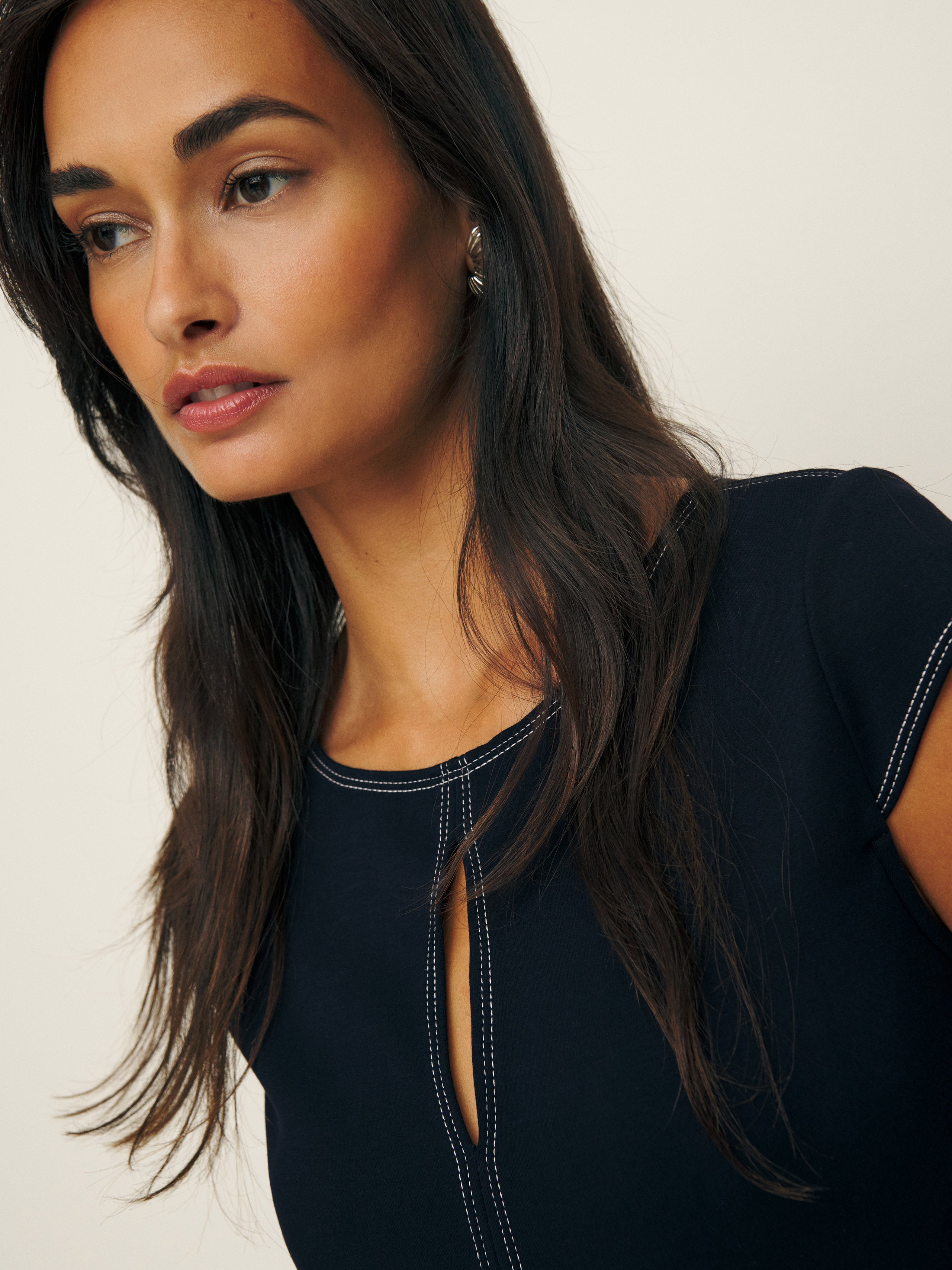 Don't flirt with me. Shop the Carsyn Knit Dress from Reformation, a sleeveless mini dress with a keyhole detail.