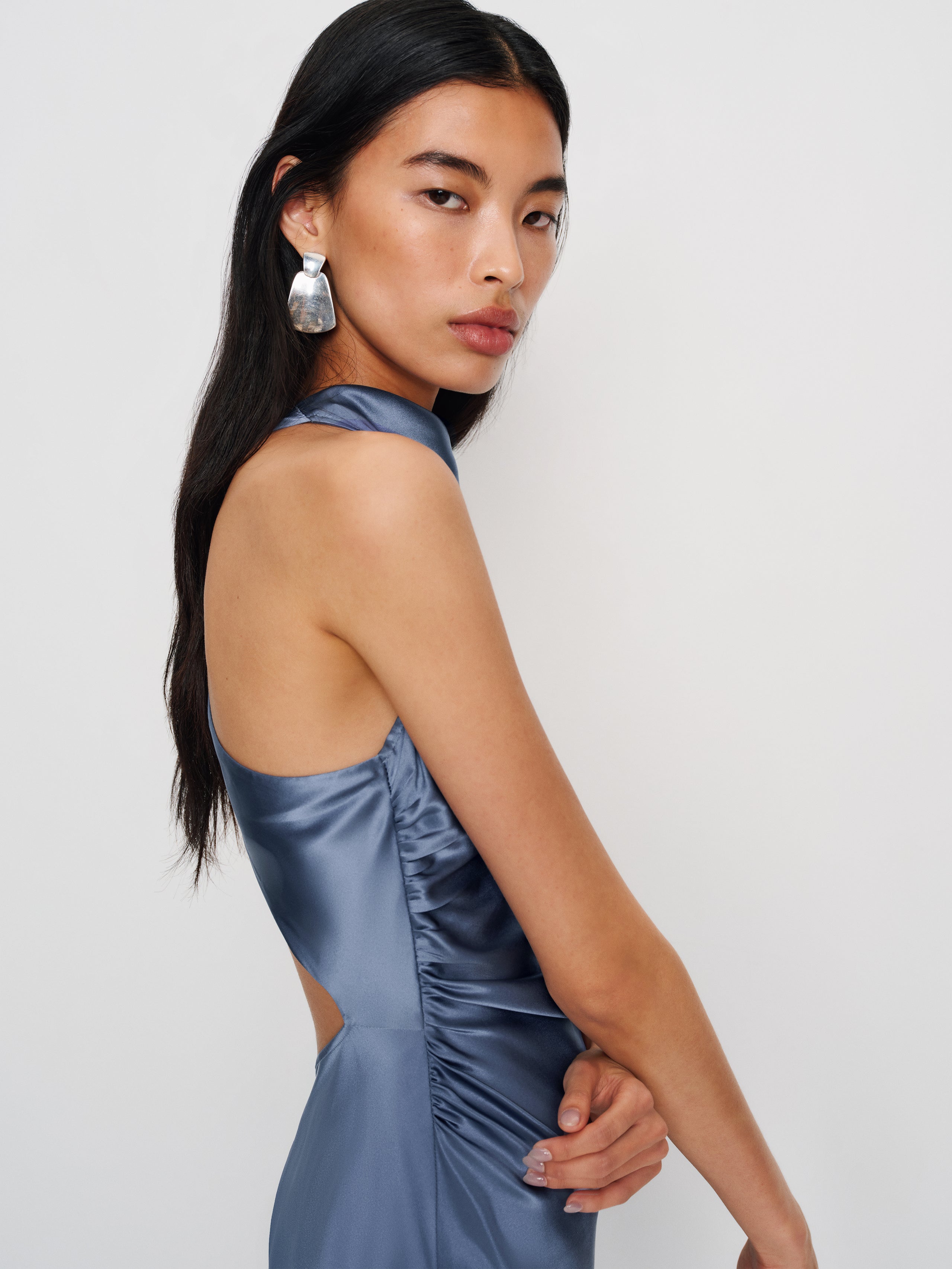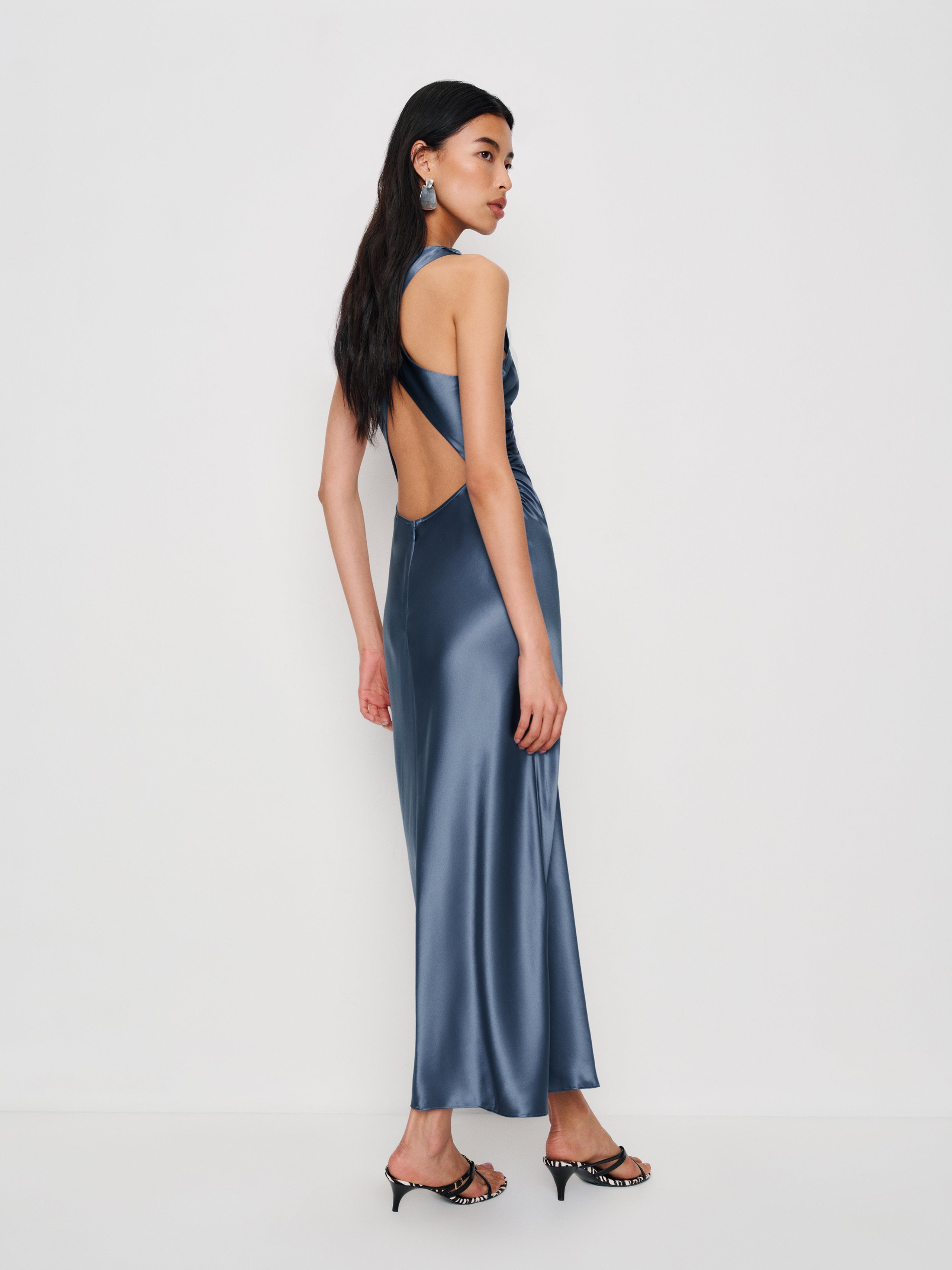 Sleeves are cancelled. Shop the Casette Silk Dress from Reformation, a sleeveless, midi dress with a cowl...