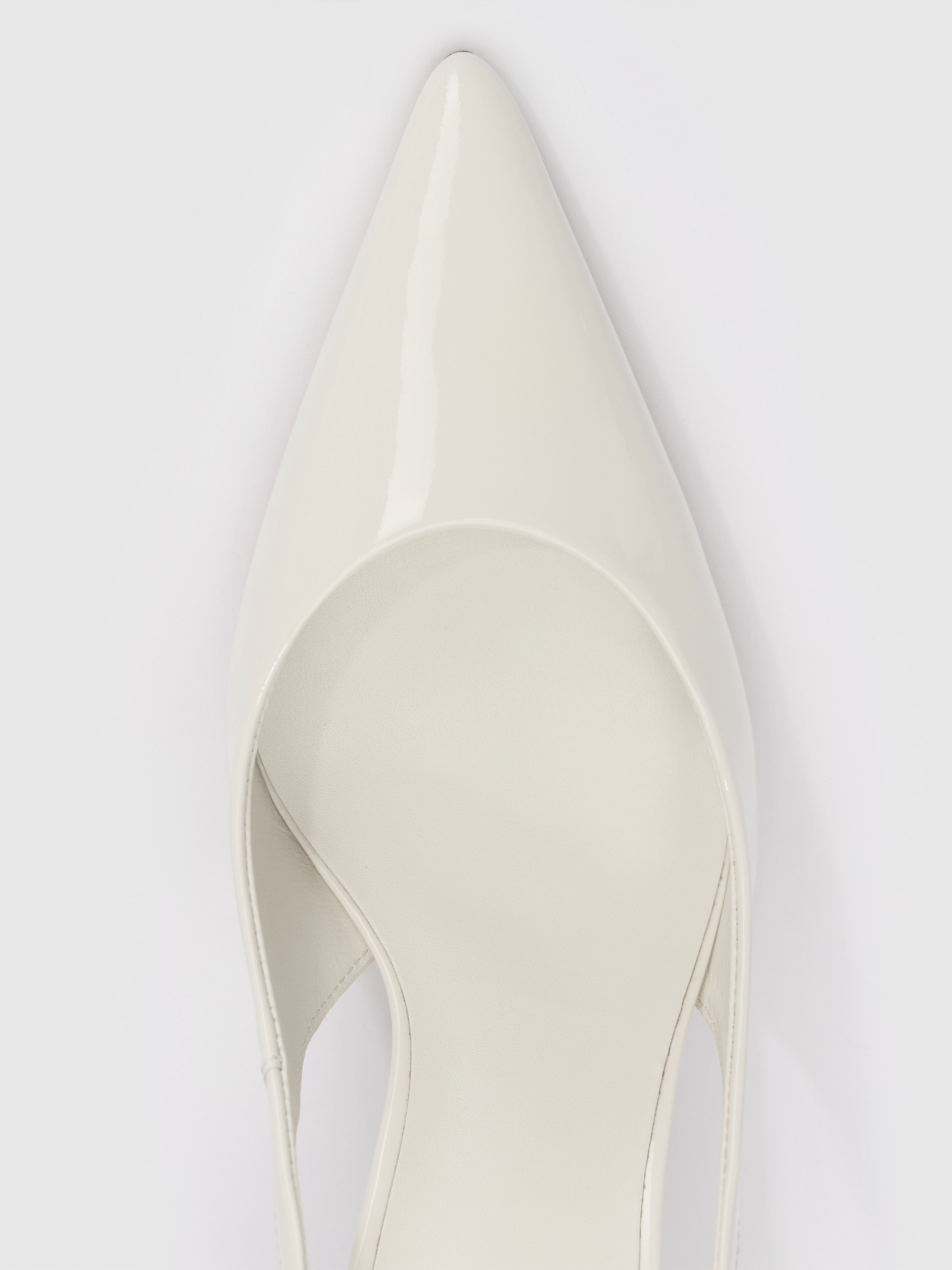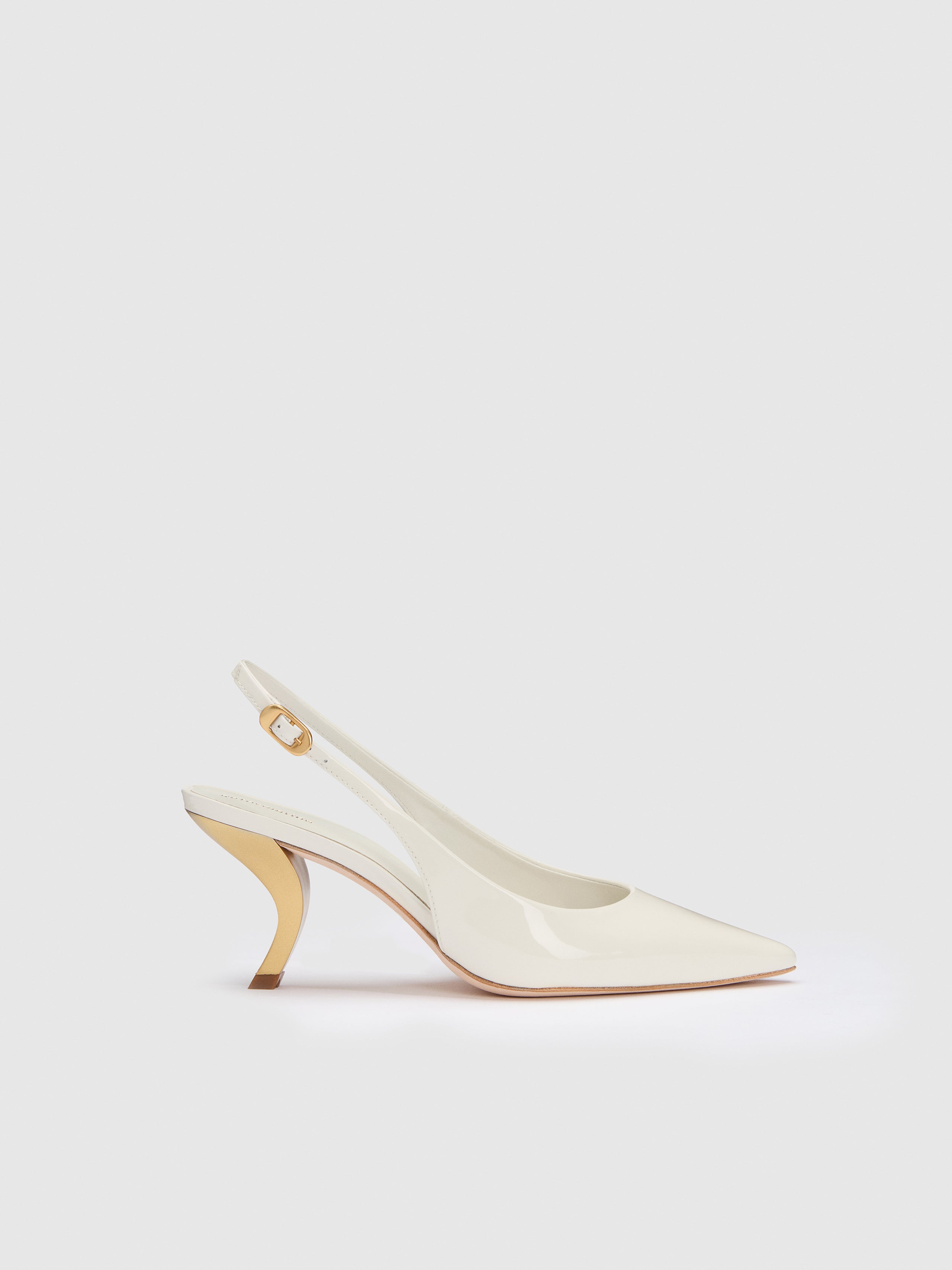 Treat your feet. Shop the Cassie Slingback Heel from Reformation, a pointed toe slingback with a curved heel. Will go anywhere with you.