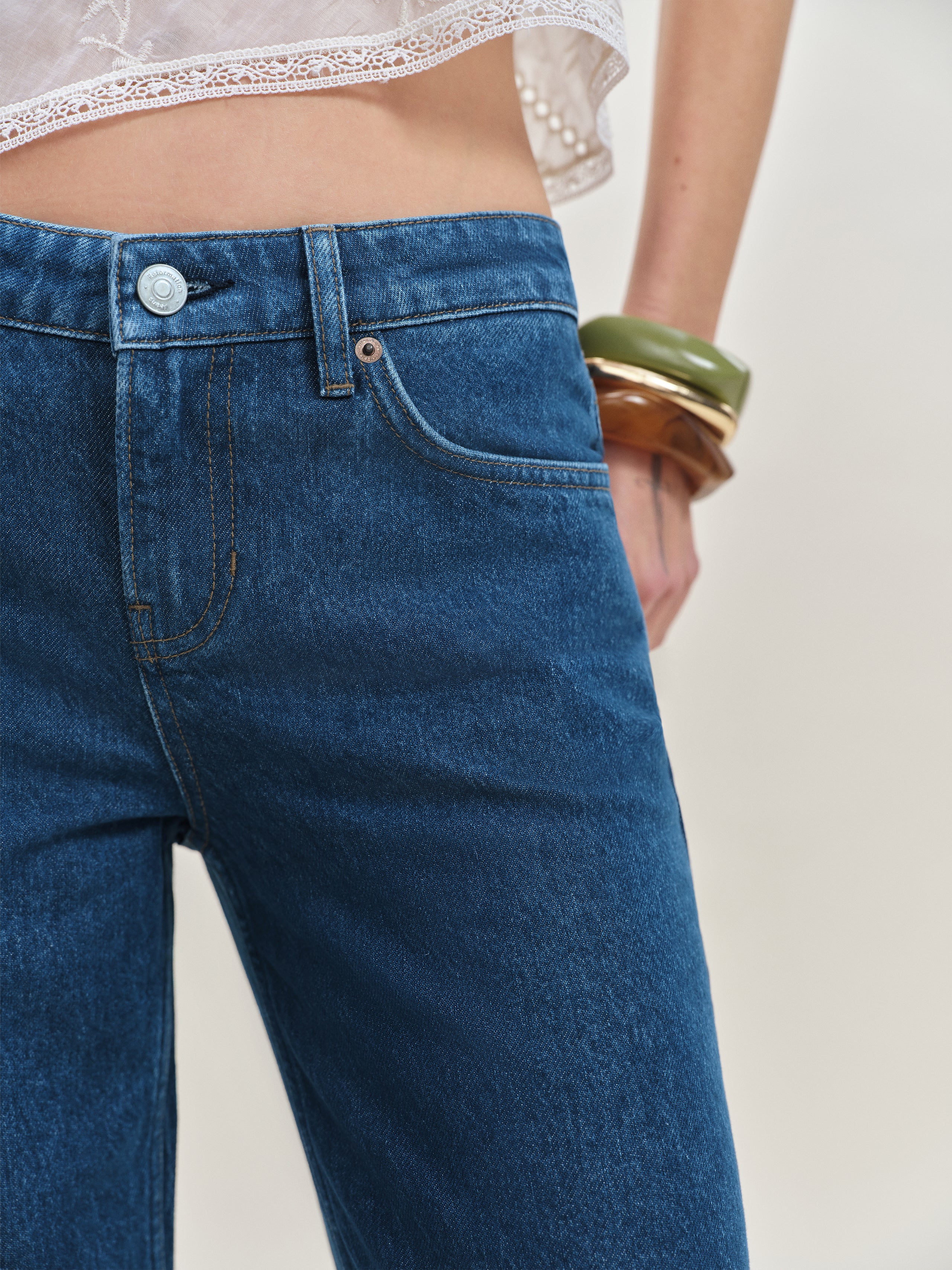 Denim time. Shop the Charlee Low Rise Straight Leg Jeans from Reformation, a low-rise jean with a...