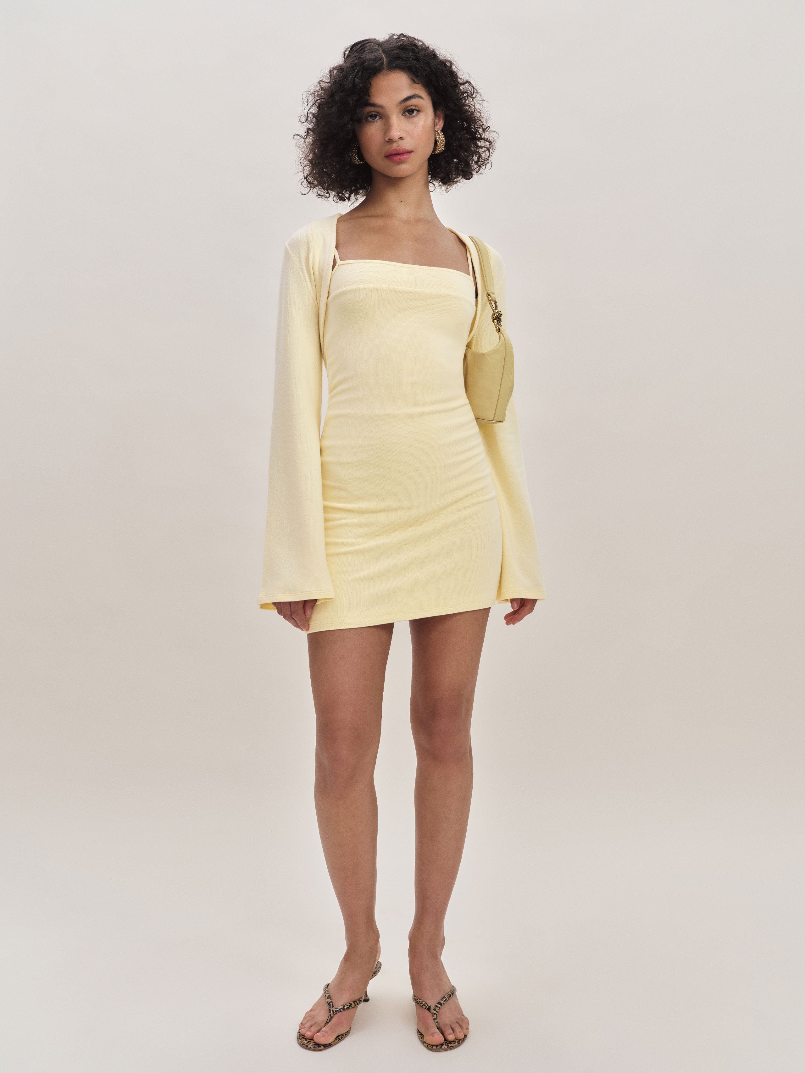 Better together. Shop the Chloe Knit Shrug Dress Set from Reformation, a two-piece set with a sleeveless...