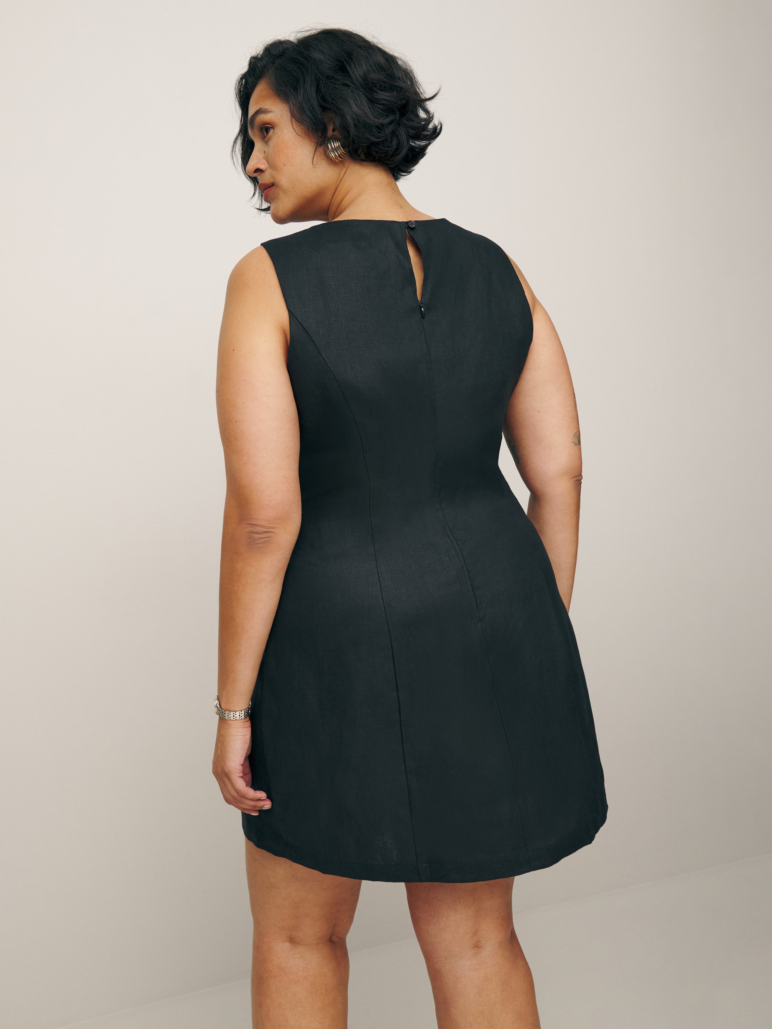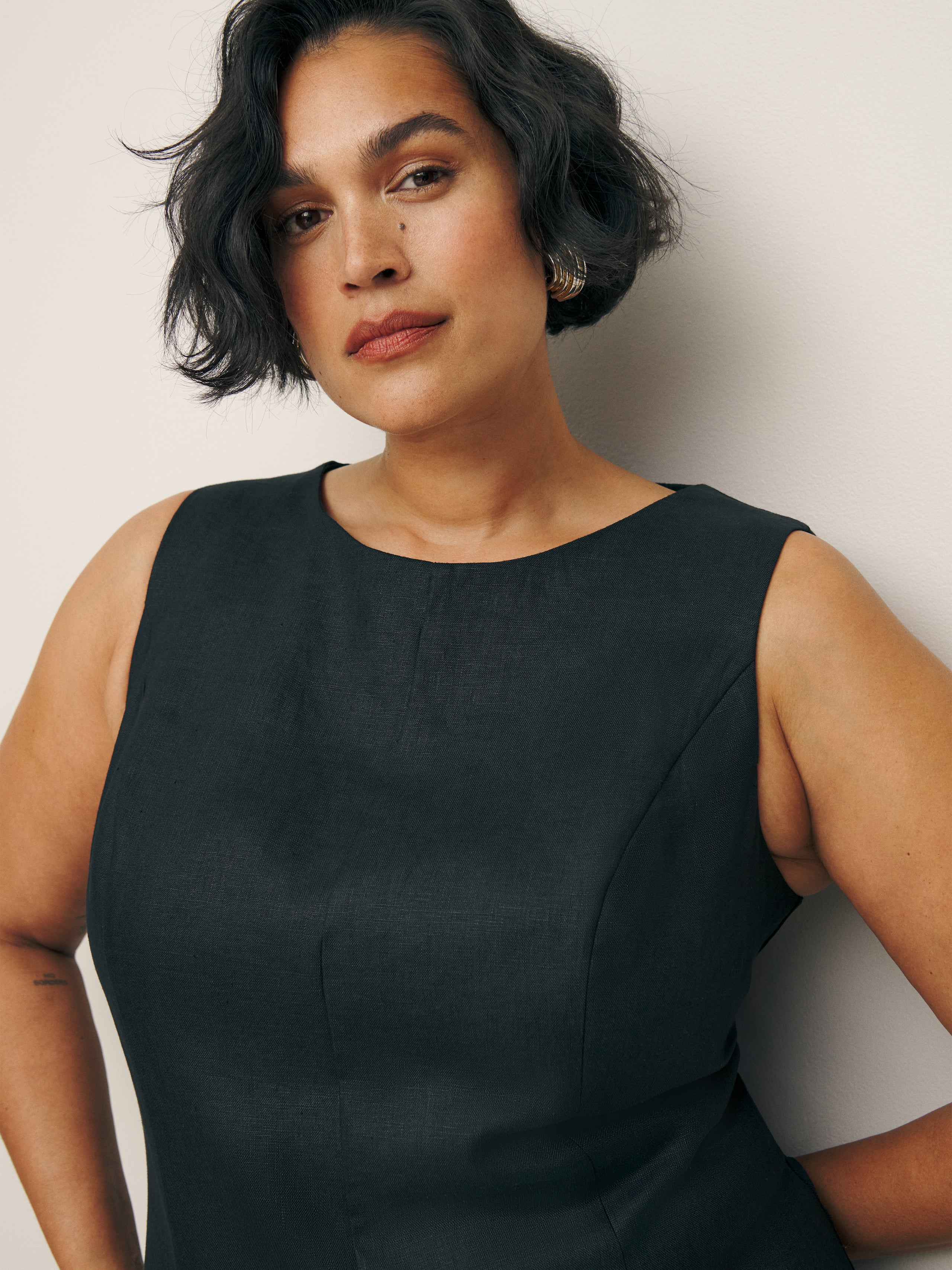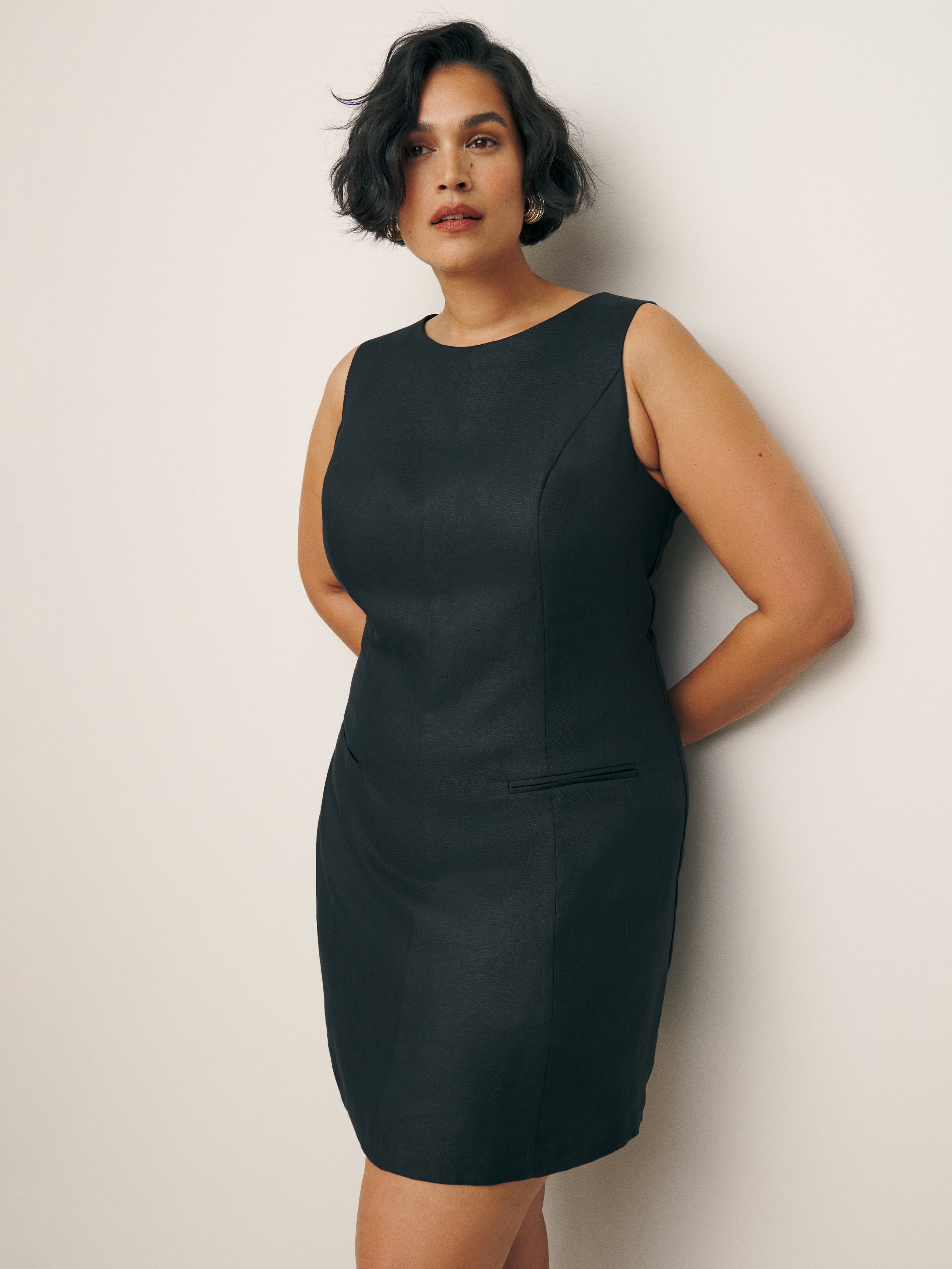 Garden time. Shop the Citron Linen Dress ES from Reformation, a fitted, tank style, shift dress. It has two front pockets and a keyhole detail at the back.