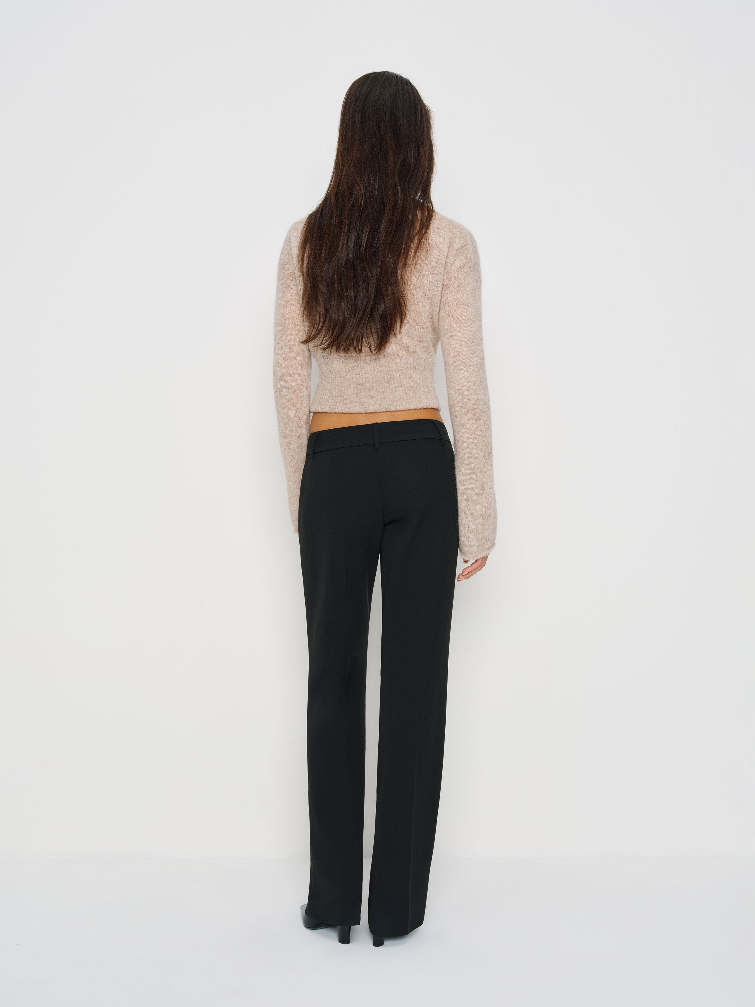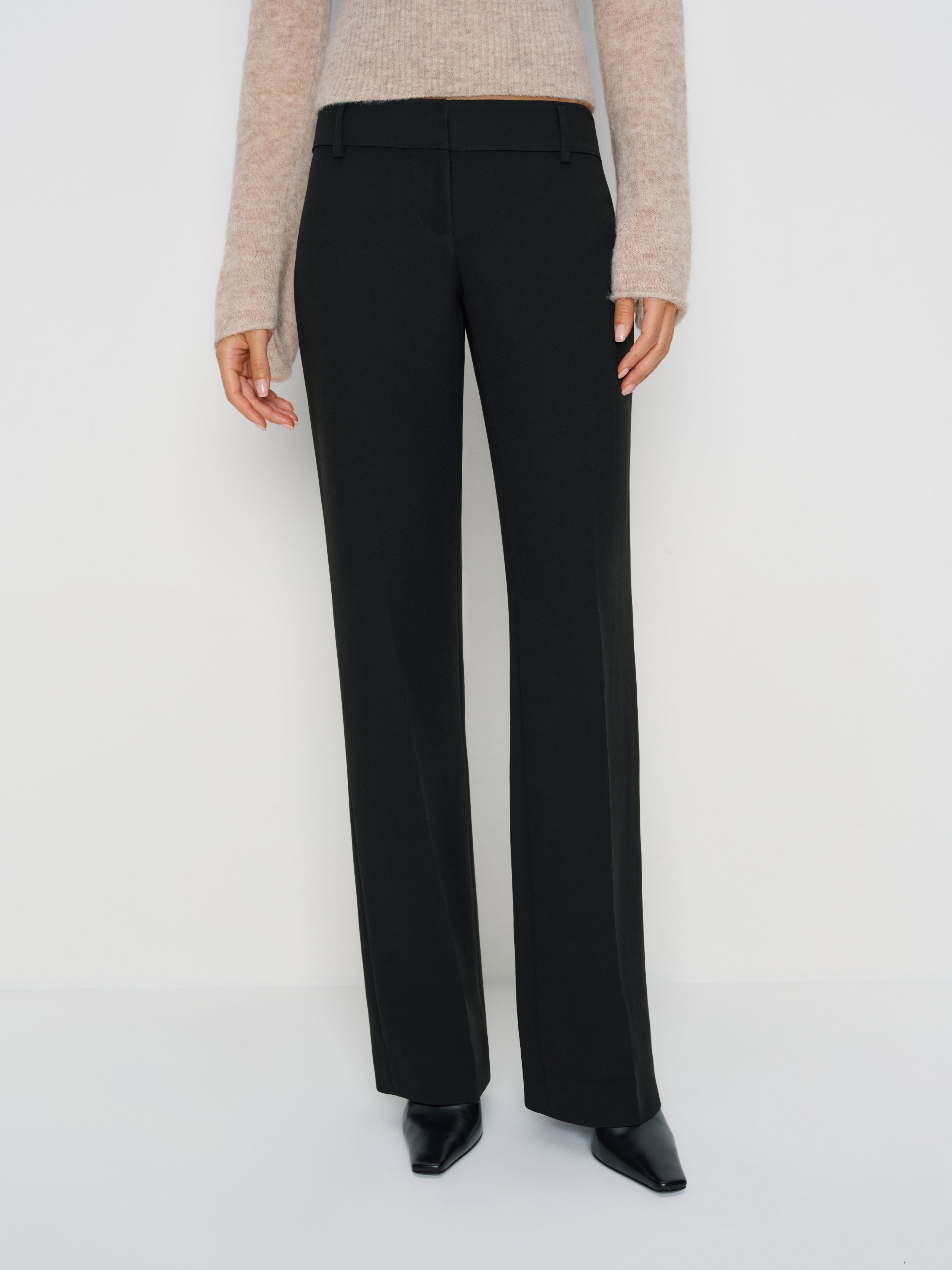 No nonsense. Shop the Claire Ultra Low Rise Pant from Reformation, a low rise pant with a straight leg. Good for work, and whatever you're doing after.