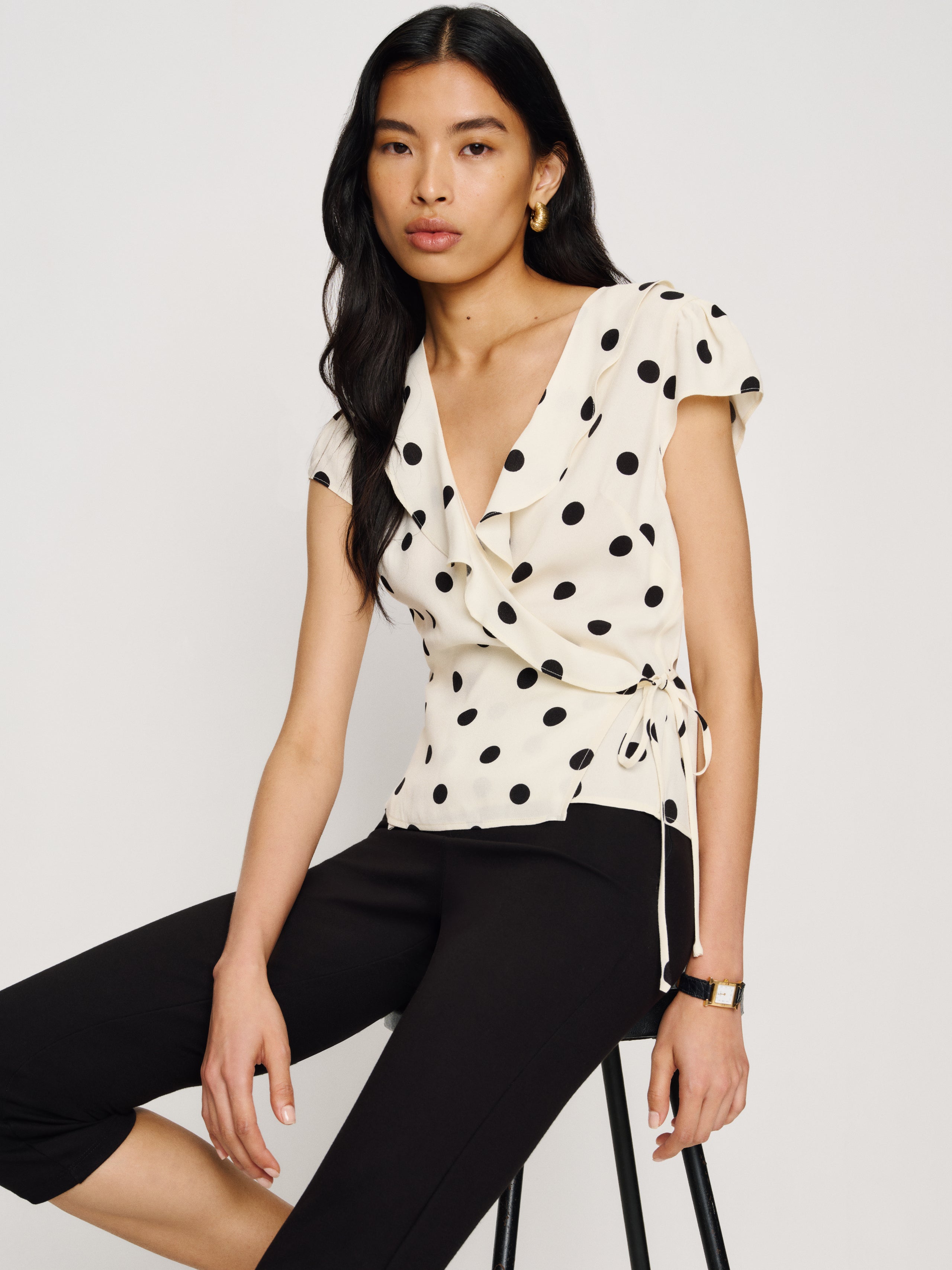 What do we have here? Shop the Clemence Top from Reformation, a short-sleeved adjustable wrap top with...