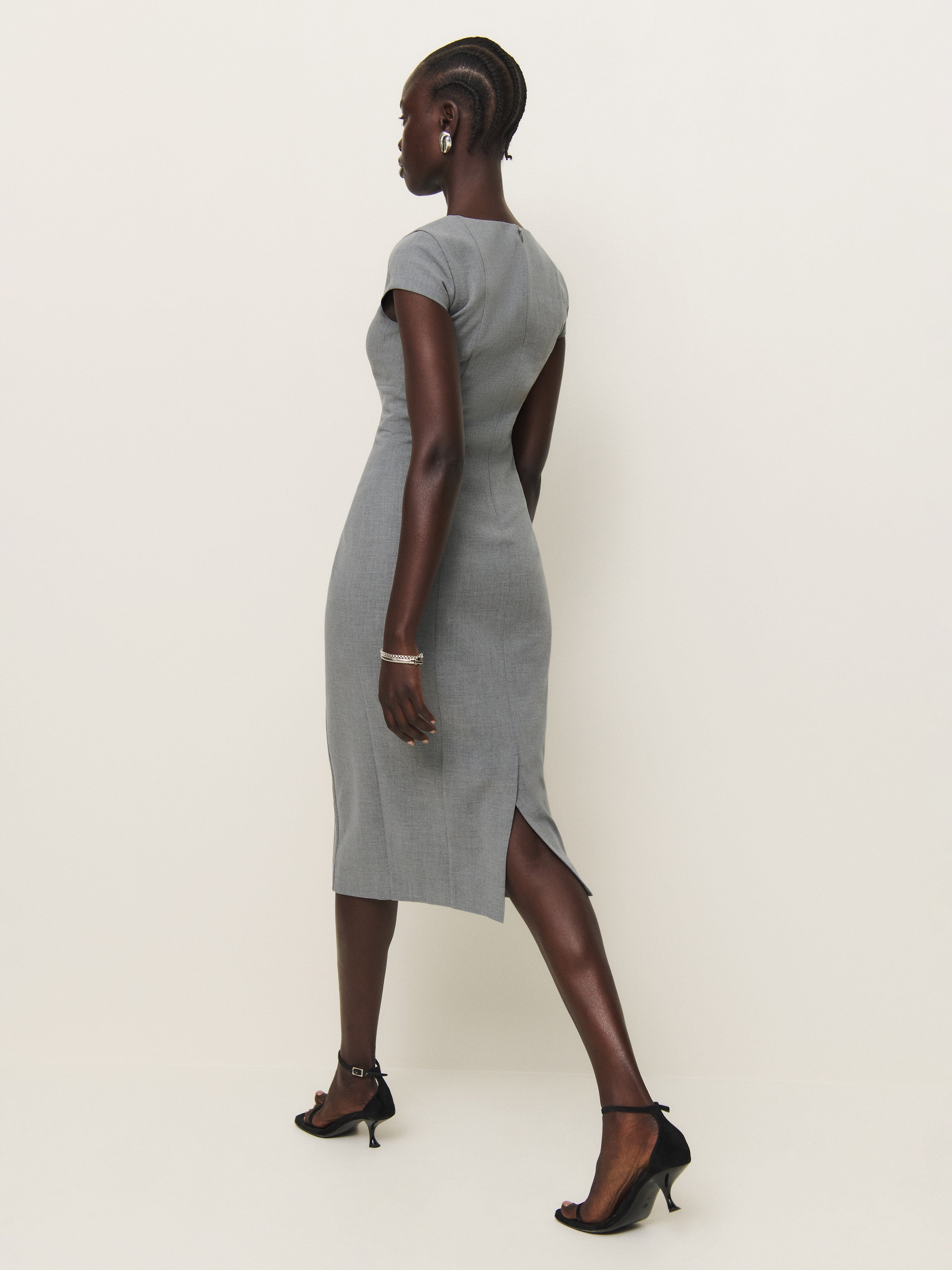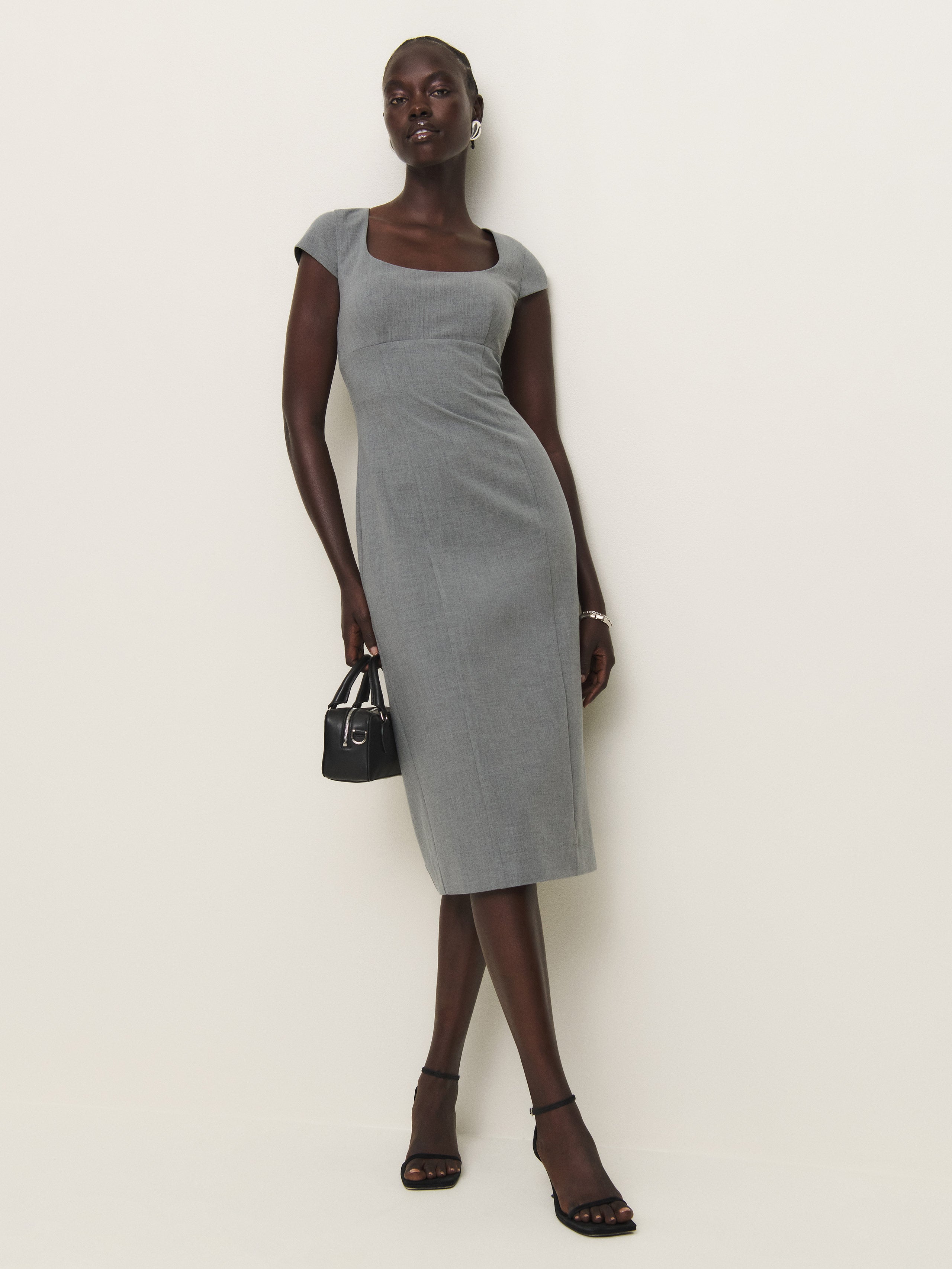 You flirt. Shop the Coco Dress from Reformation, a midi-length dress with a square neckline, capped sleeves, and front seams.