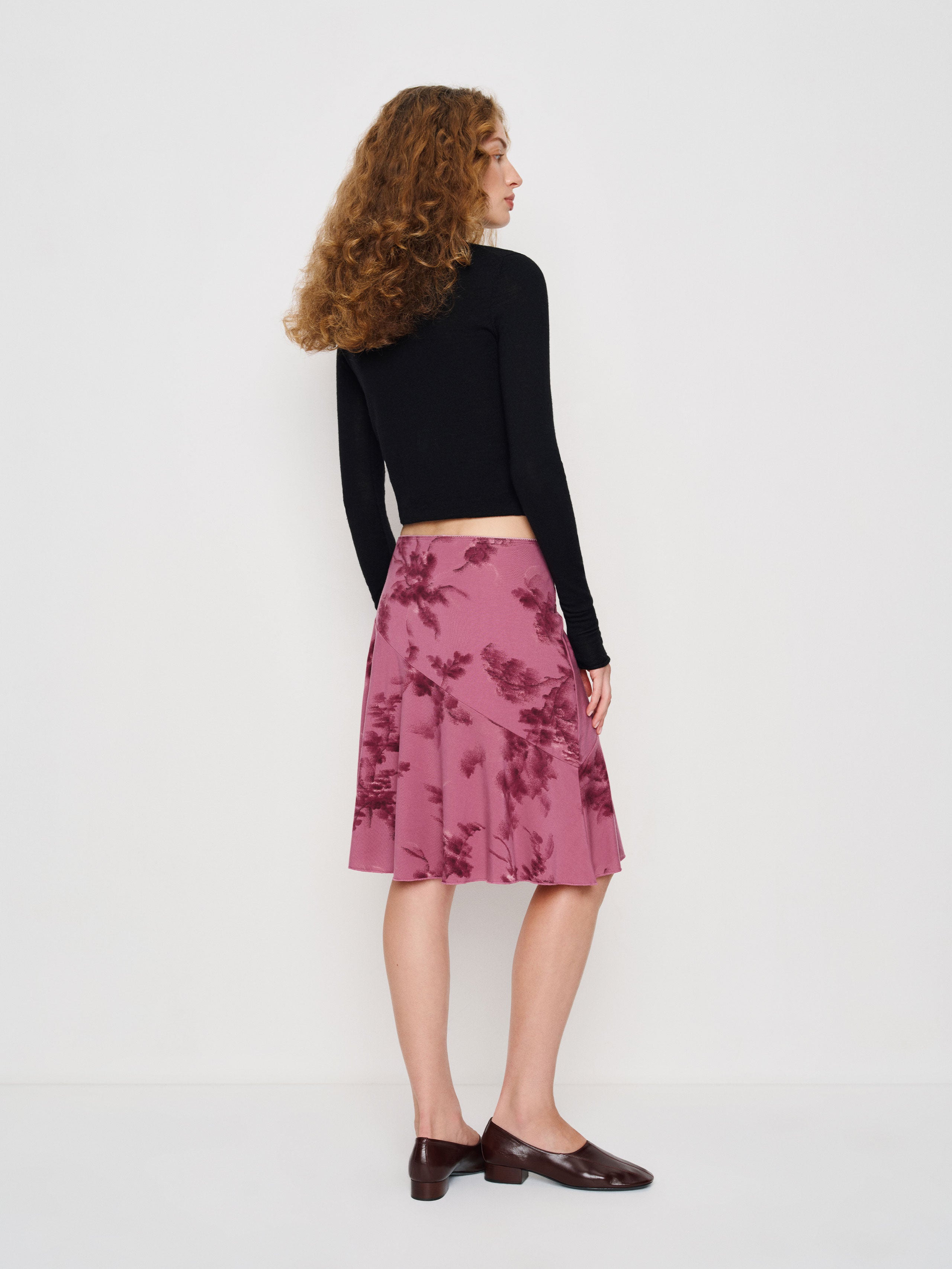 In case of getting dressed. Shop the Cora Knit Skirt from Reformation, a low-rise midi skirt with bias stitching.