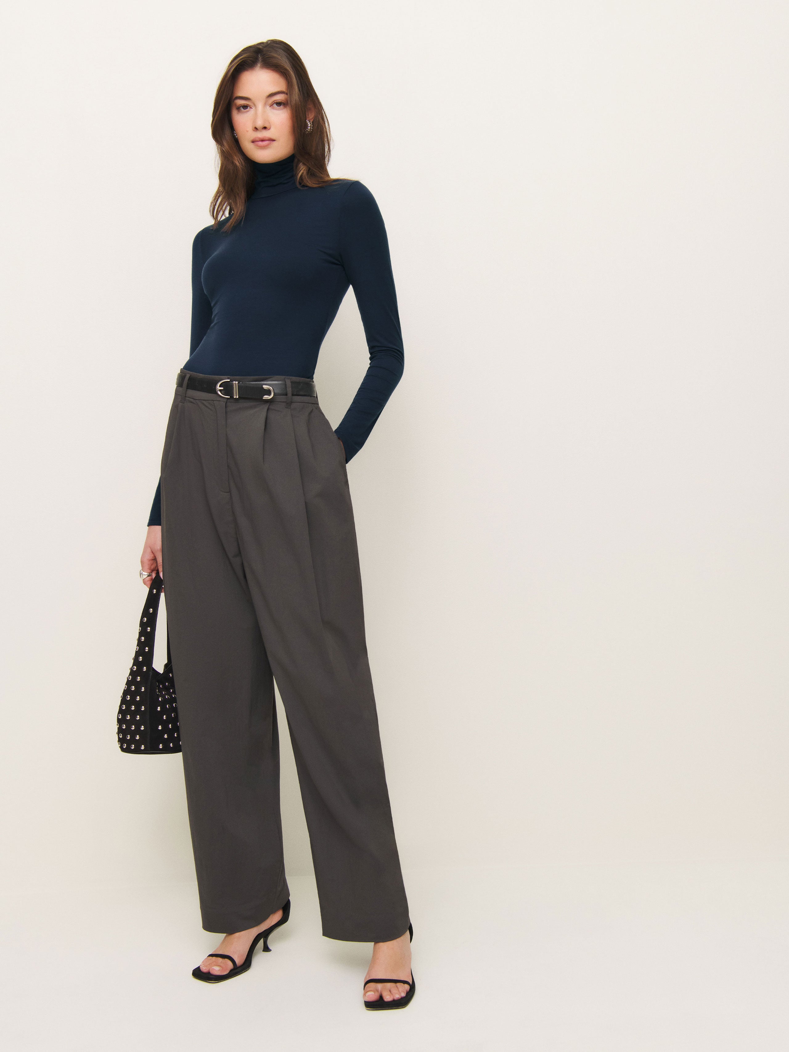 Soft and stretchy if you're into that. Shop the Cordelia Knit Bodysuit from Reformation, a fitted long sleeve bodysuit with a turtleneck neckline.