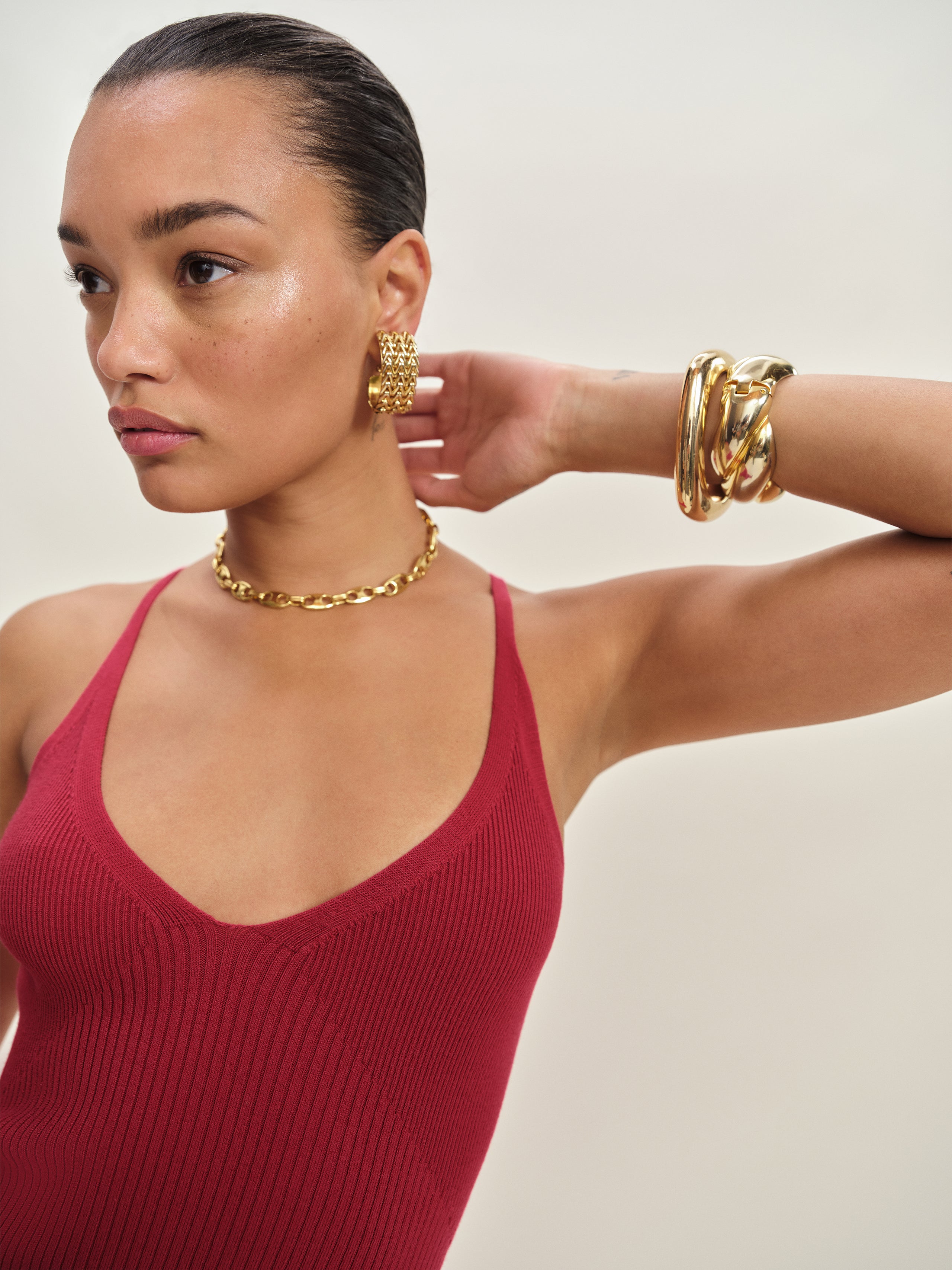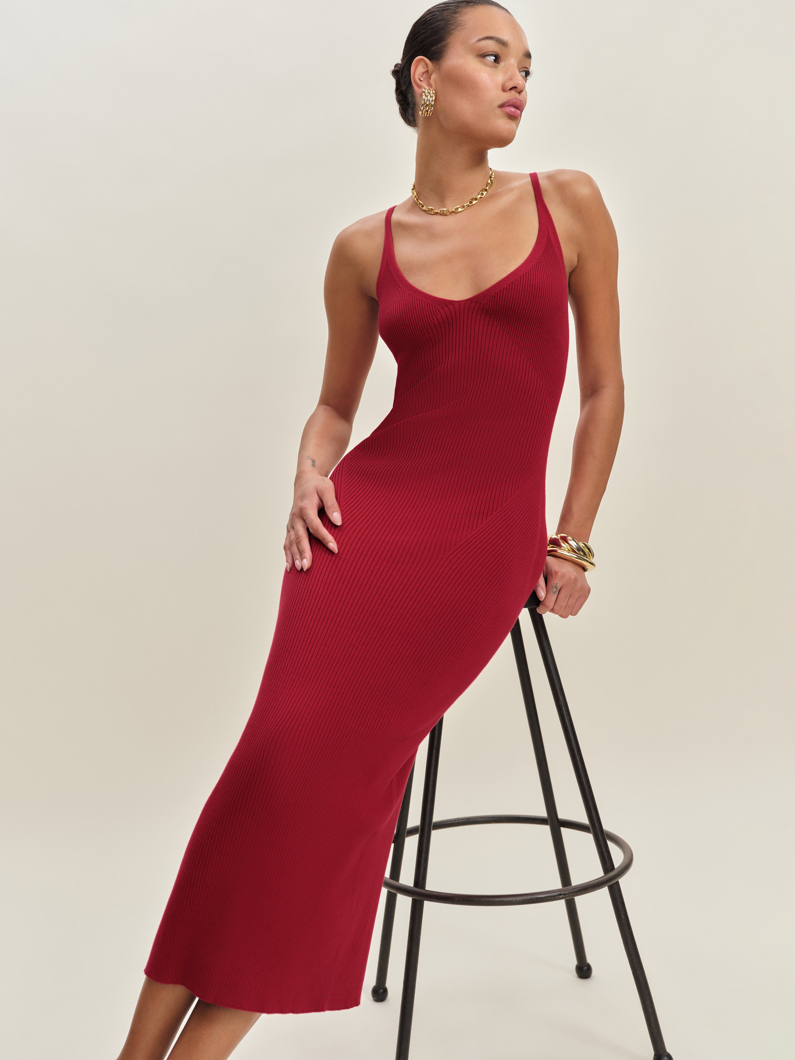 Big easy. Shop the Dahlia Cotton Sweater Dress from Reformation, a fitted, sleeveless midi dress.